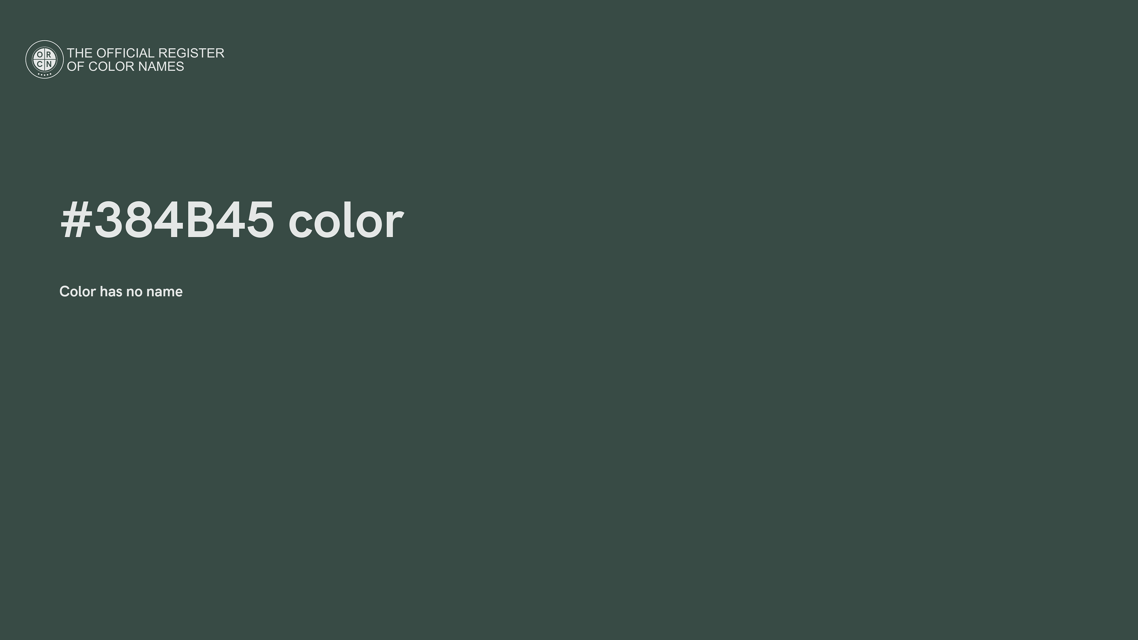 The digital color HEX #384B45 belongs to the Spring Green Color Family featuring Low Saturation (Saturation Family) and Neutral (Brightness Family).