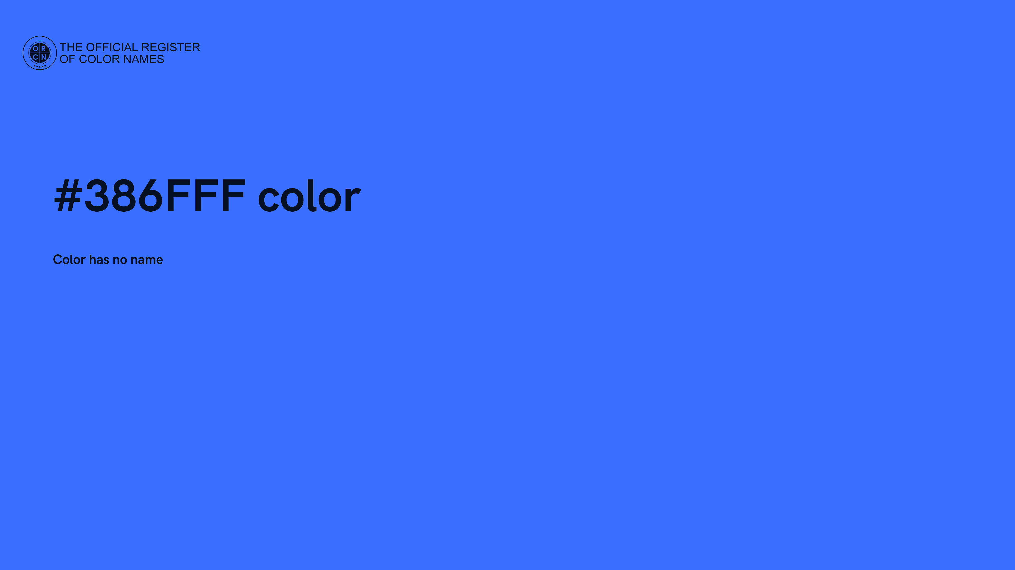 For printing in non digital world, #386FFF is represented in CMYK as 78 Cyan, 56 Magenta, 0 Yellow, and 0 Black (Key) (C:78 M:56 Y:0 K:0).