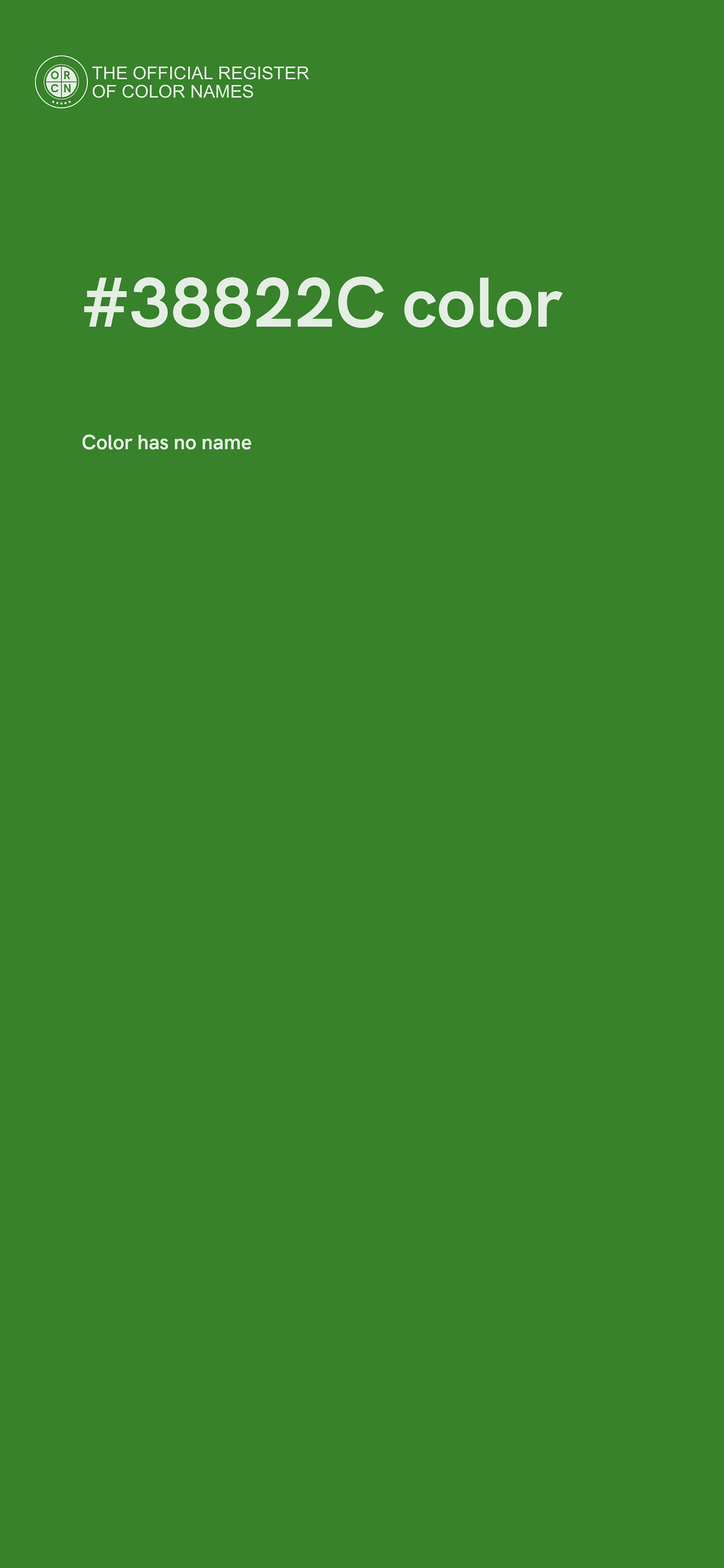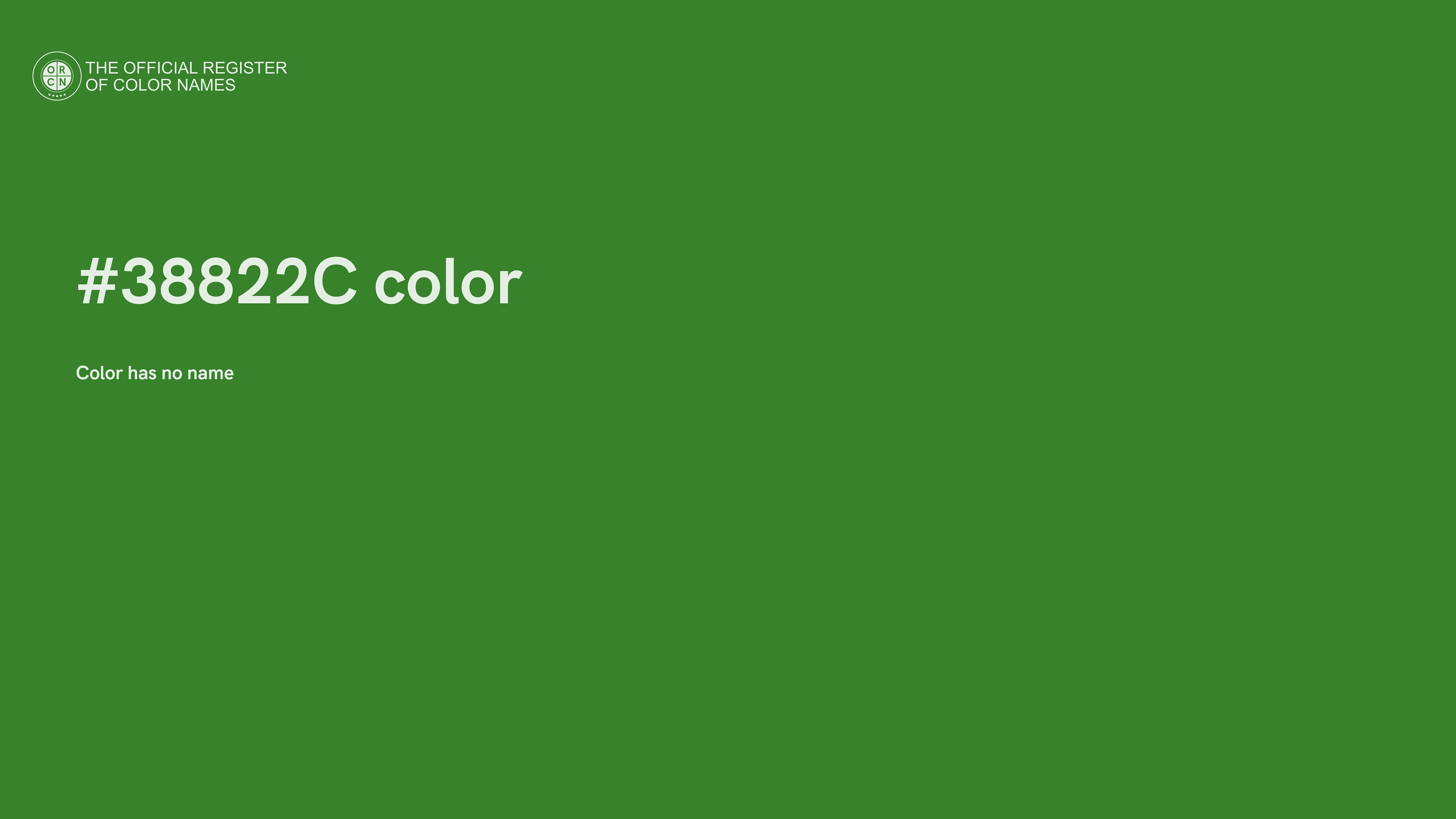 The digital color HEX #38822C belongs to the Green Color Family featuring Moderate Saturation (Saturation Family) and Neutral (Brightness Family).