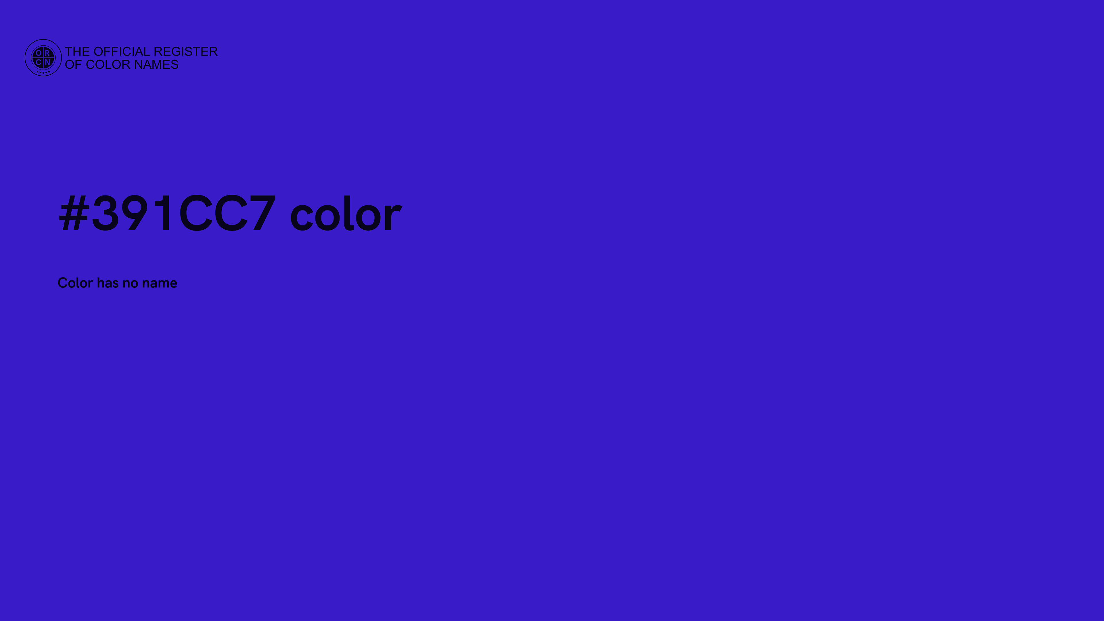 For printing in non digital world, #391CC7 is represented in CMYK as 56 Cyan, 67 Magenta, 0 Yellow, and 22 Black (Key) (C:56 M:67 Y:0 K:22).