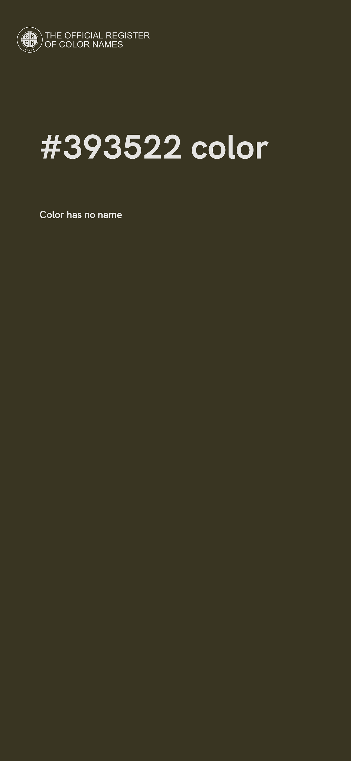 The digital color HEX #393522 belongs to the Yellow Color Family featuring Mild Saturation (Saturation Family) and Dark (Brightness Family).