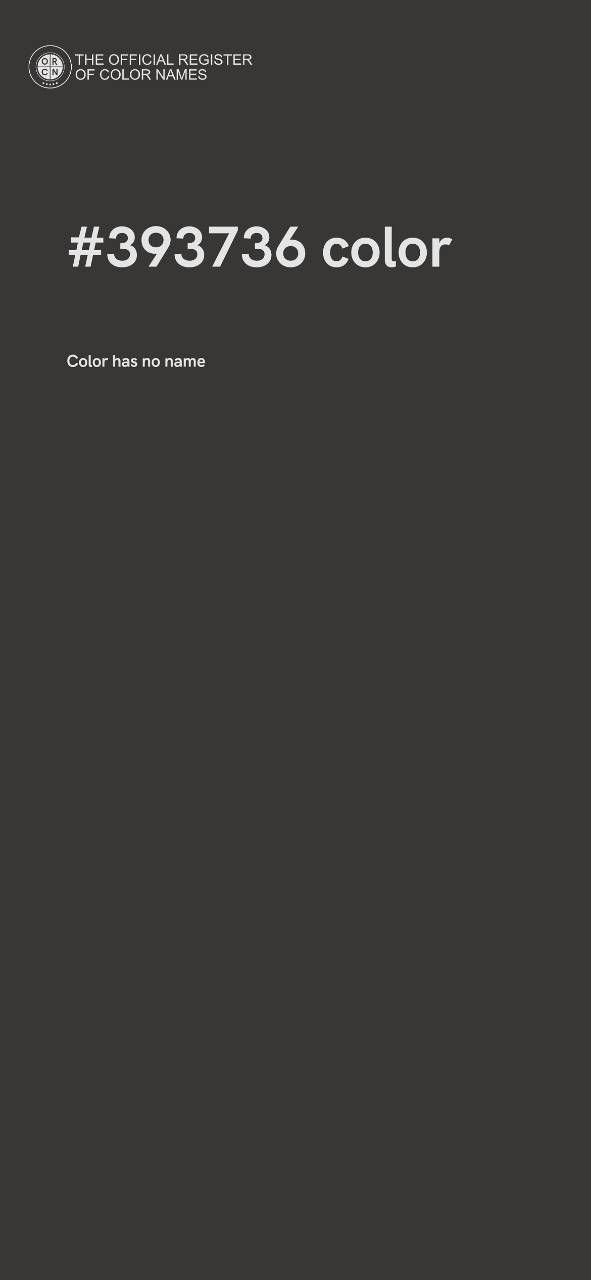 The digital color HEX #393736 belongs to the Orange Color Family featuring Desaturated (Saturation Family) and Dark (Brightness Family).