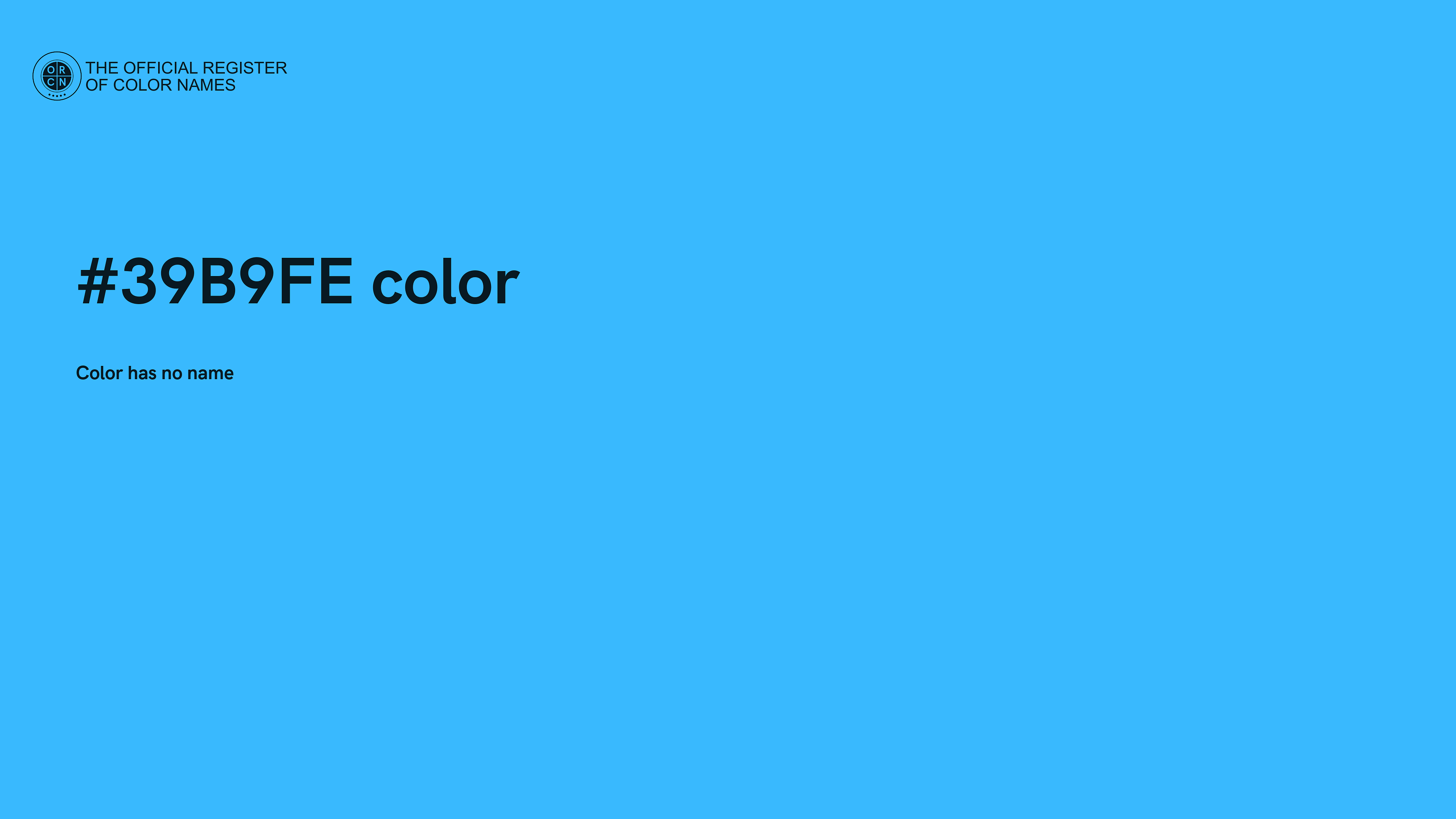 The digital color HEX #39B9FE belongs to the Azure Color Family featuring Full Saturation (Saturation Family) and Very Light (Brightness Family).