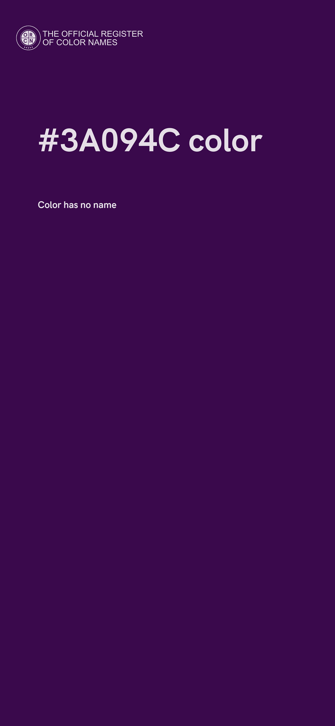 The digital color HEX #3A094C belongs to the Violet Color Family featuring High Saturation (Saturation Family) and Dark (Brightness Family).