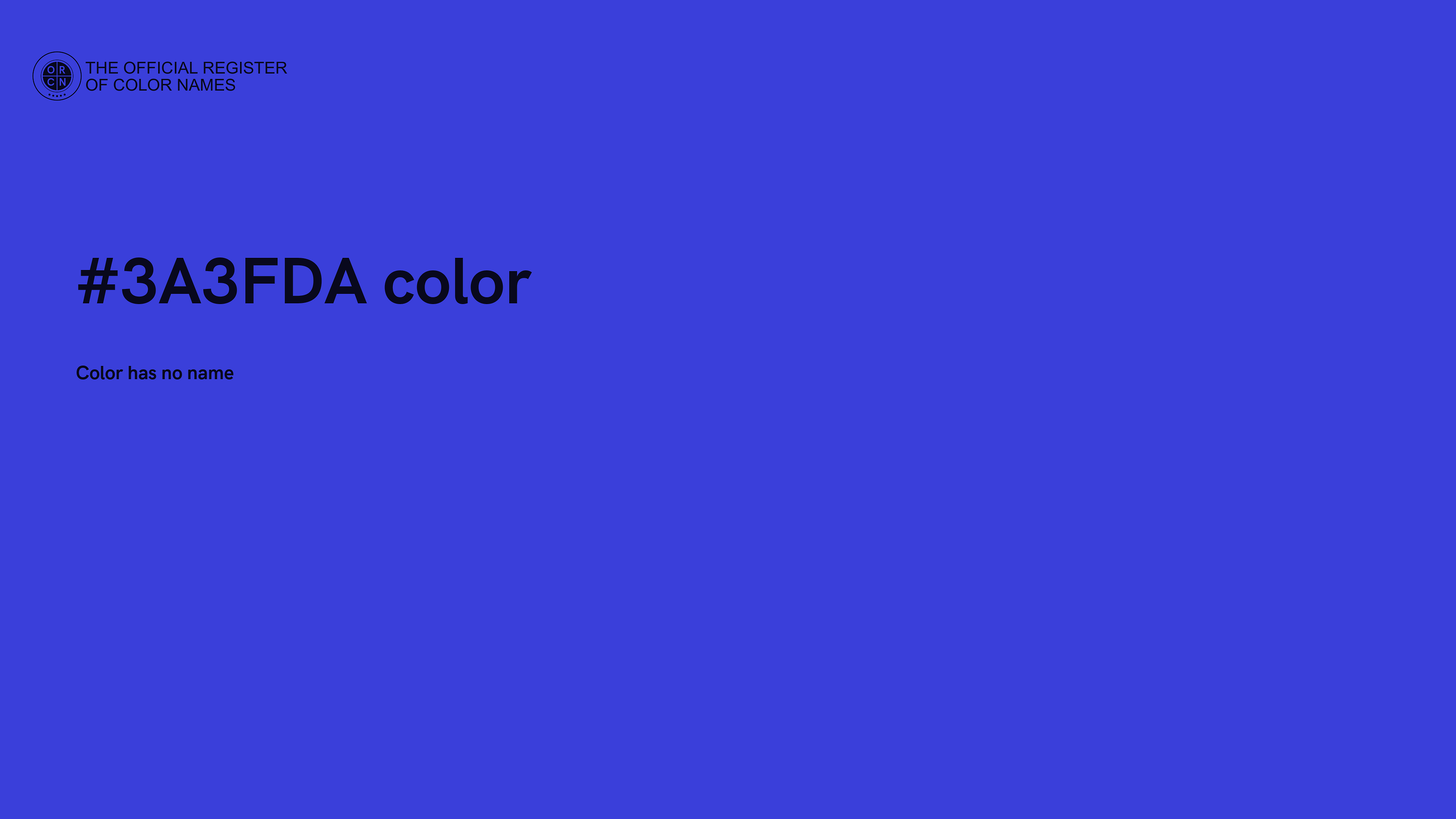 For printing in non digital world, #3A3FDA is represented in CMYK as 63 Cyan, 61 Magenta, 0 Yellow, and 15 Black (Key) (C:63 M:61 Y:0 K:15).