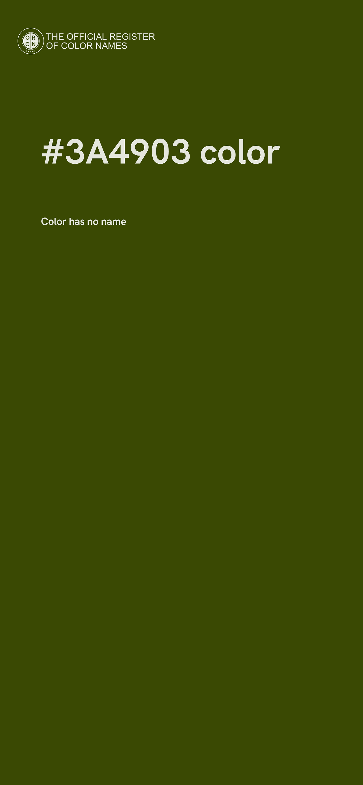 The digital color HEX #3A4903 belongs to the Yellow Color Family featuring Full Saturation (Saturation Family) and Dark (Brightness Family).