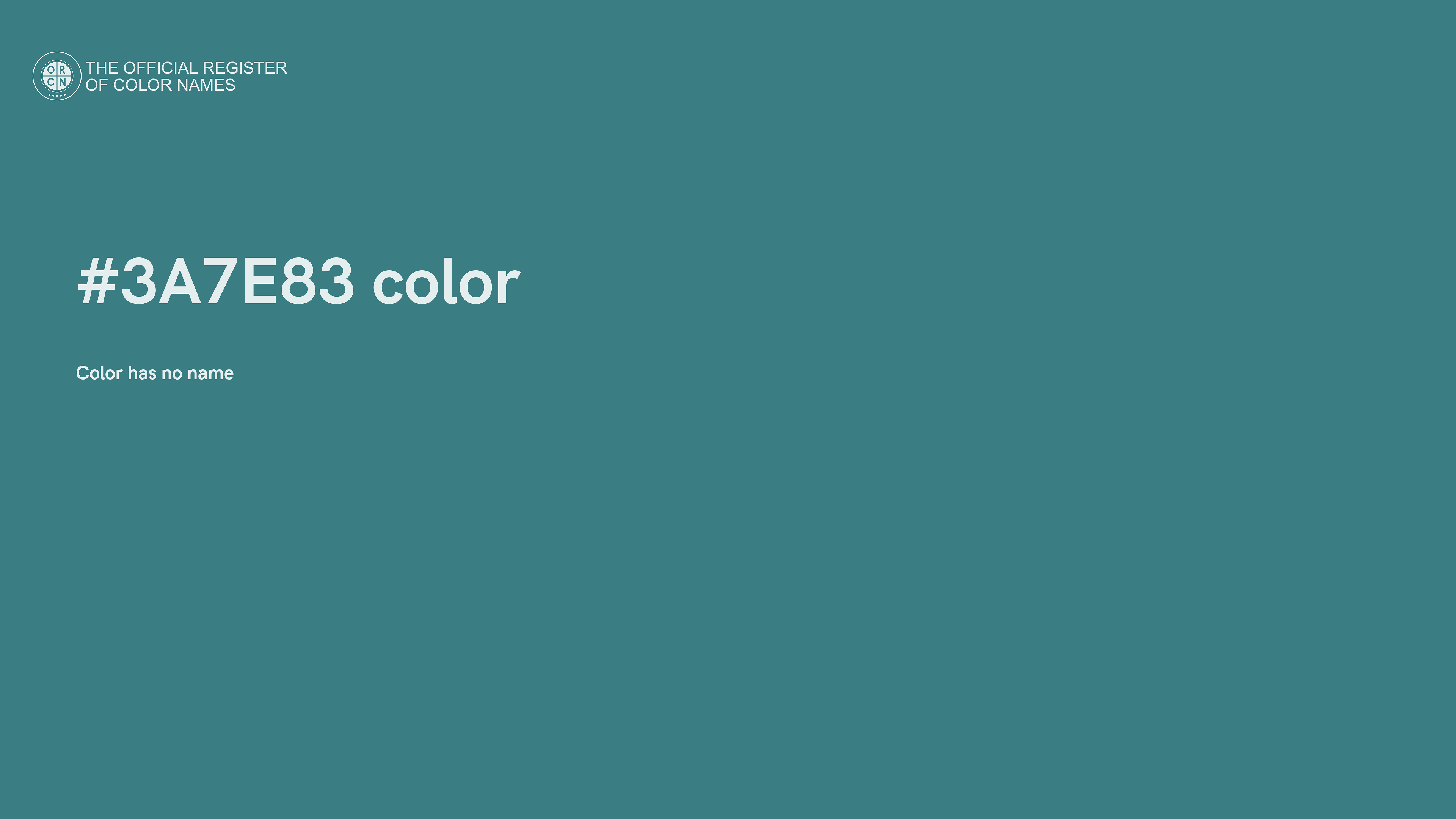 The digital color HEX #3A7E83 belongs to the Cyan Color Family featuring Mild Saturation (Saturation Family) and Neutral (Brightness Family).