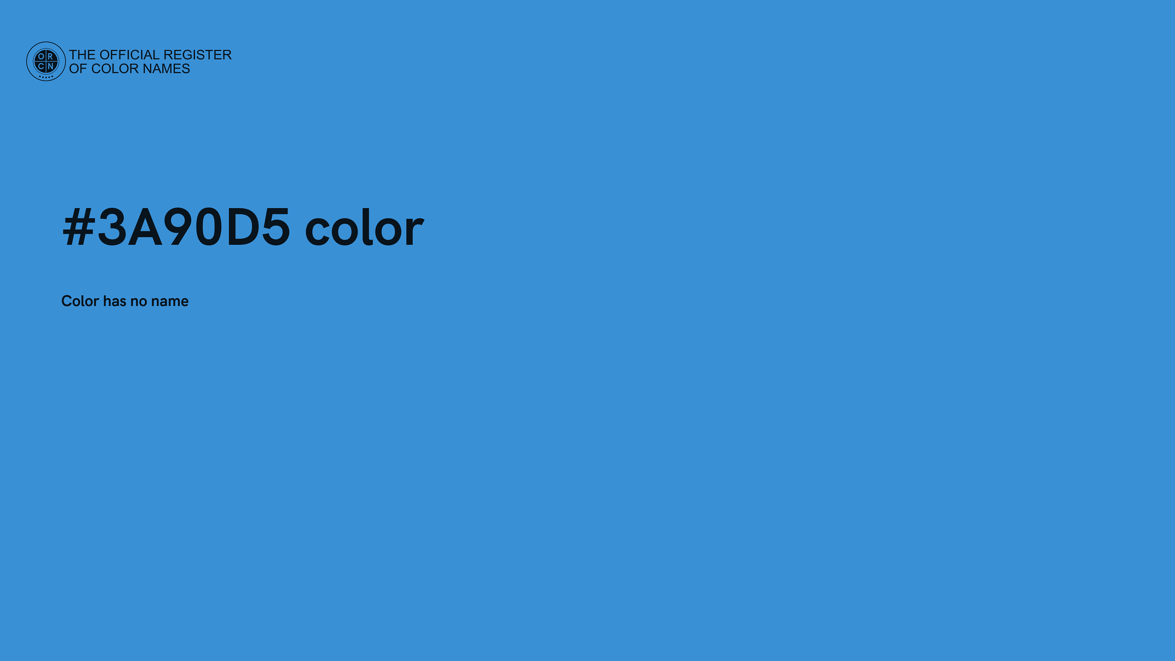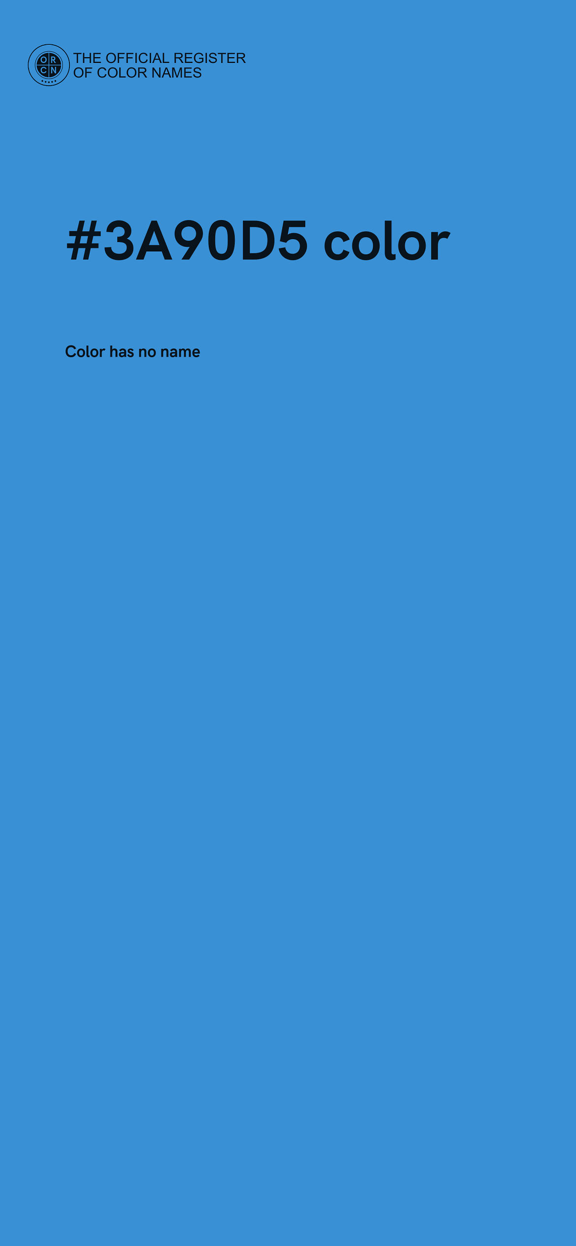 The digital color HEX #3A90D5 belongs to the Azure Color Family featuring High Saturation (Saturation Family) and Light (Brightness Family).