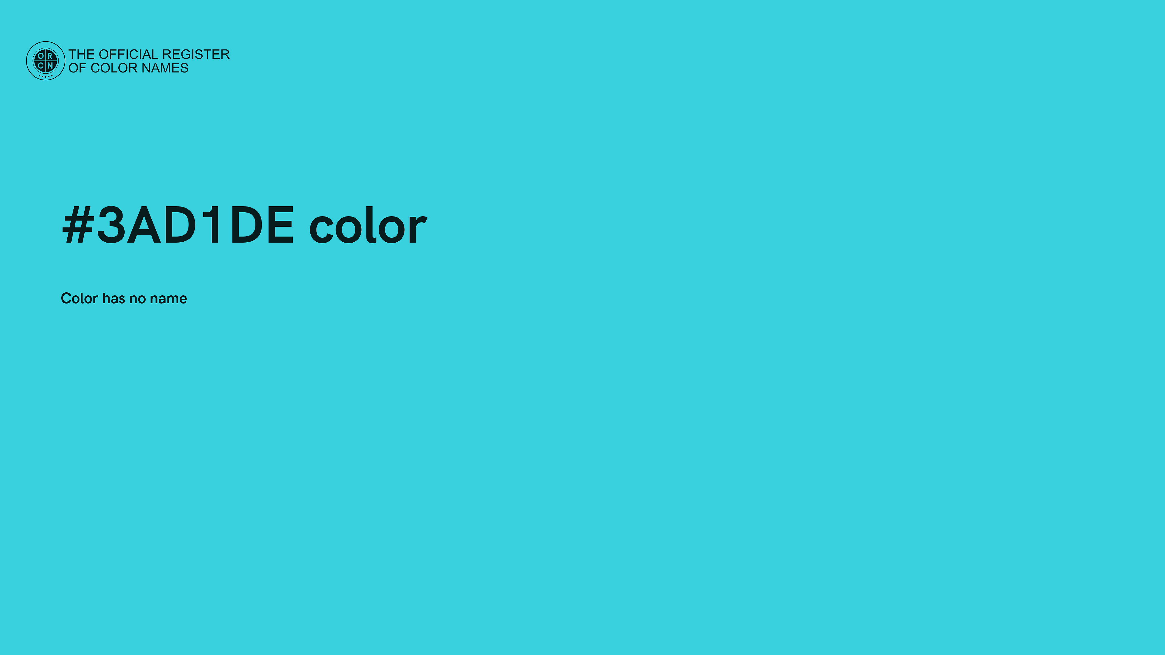 The digital color HEX #3AD1DE belongs to the Cyan Color Family featuring High Saturation (Saturation Family) and Light (Brightness Family).