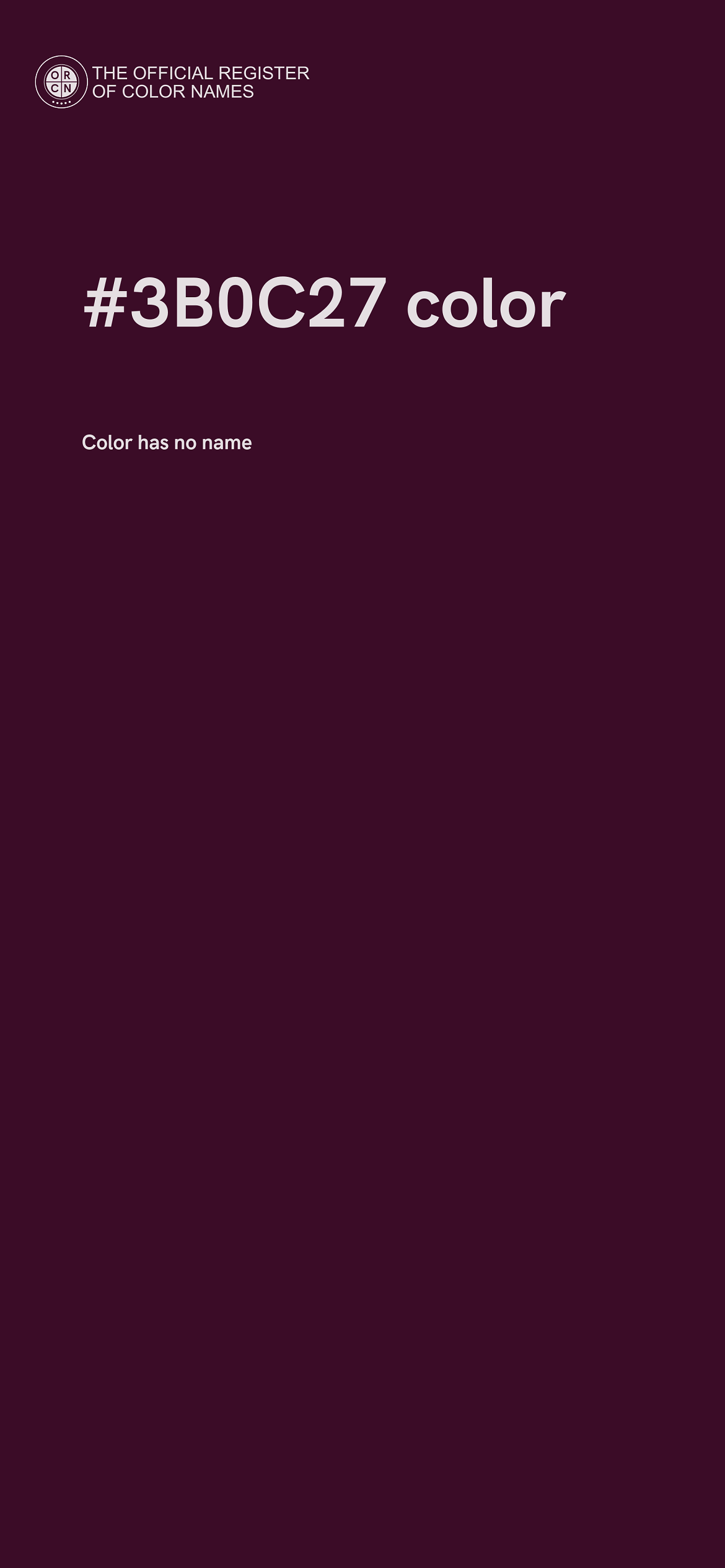The digital color HEX #3B0C27 belongs to the Rose Color Family featuring High Saturation (Saturation Family) and Dark (Brightness Family).