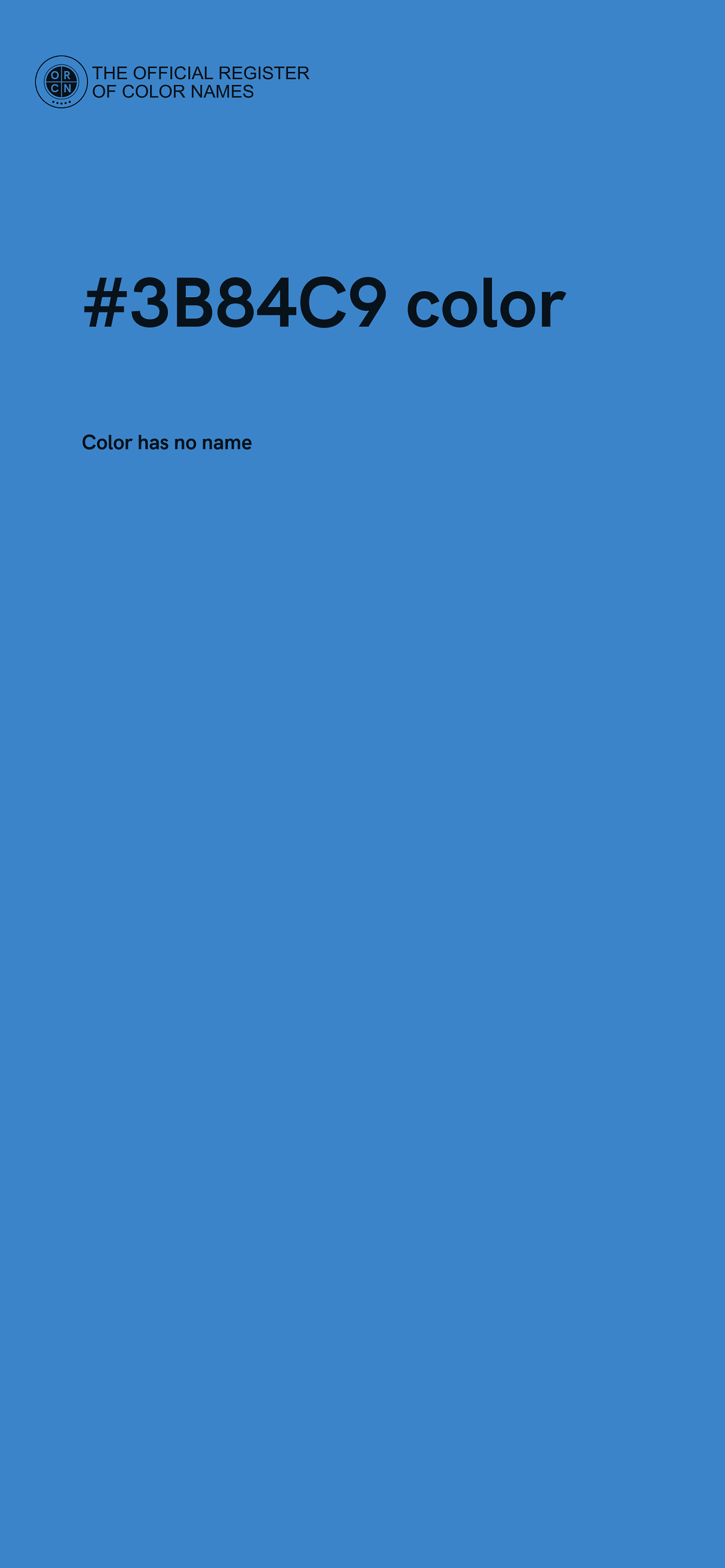 The digital color HEX #3B84C9 belongs to the Azure Color Family featuring Moderate Saturation (Saturation Family) and Light (Brightness Family).