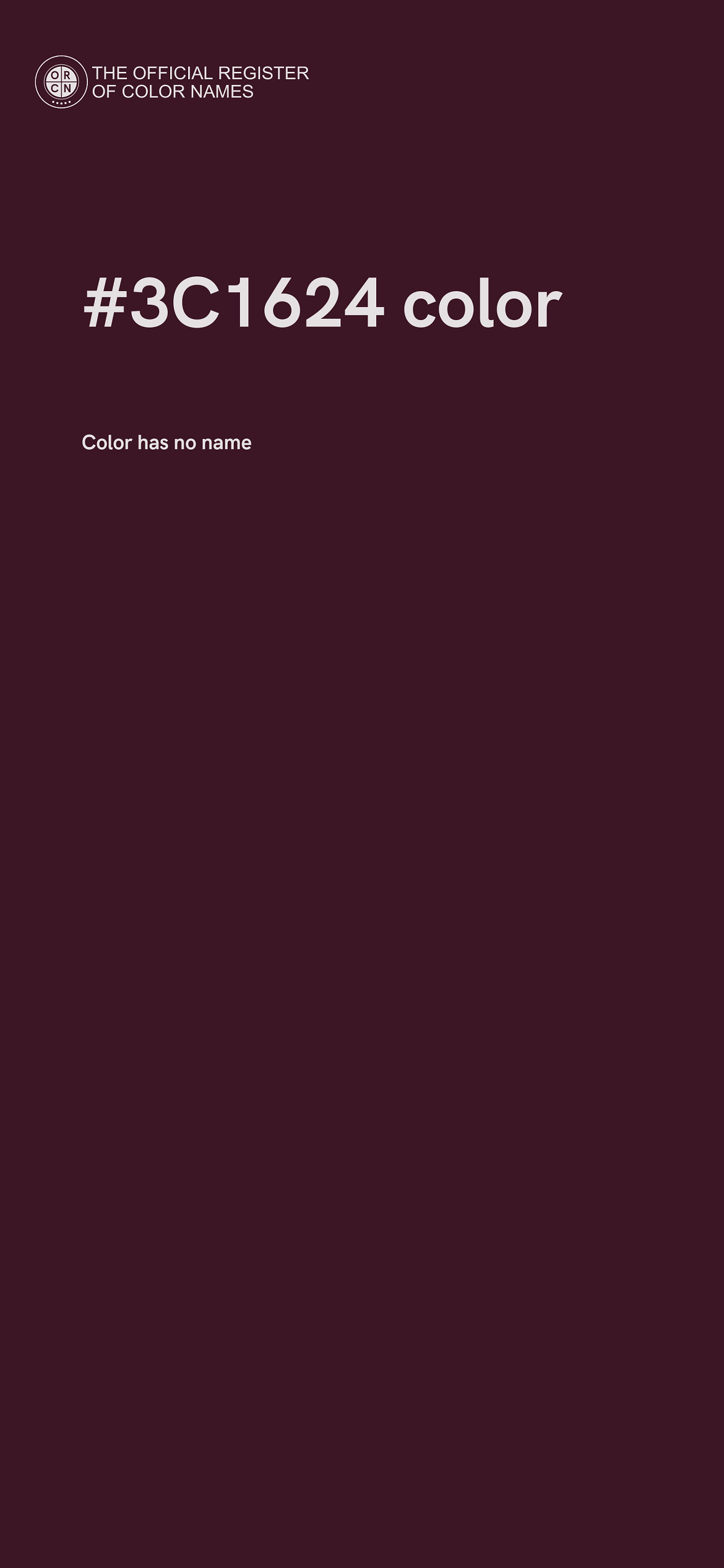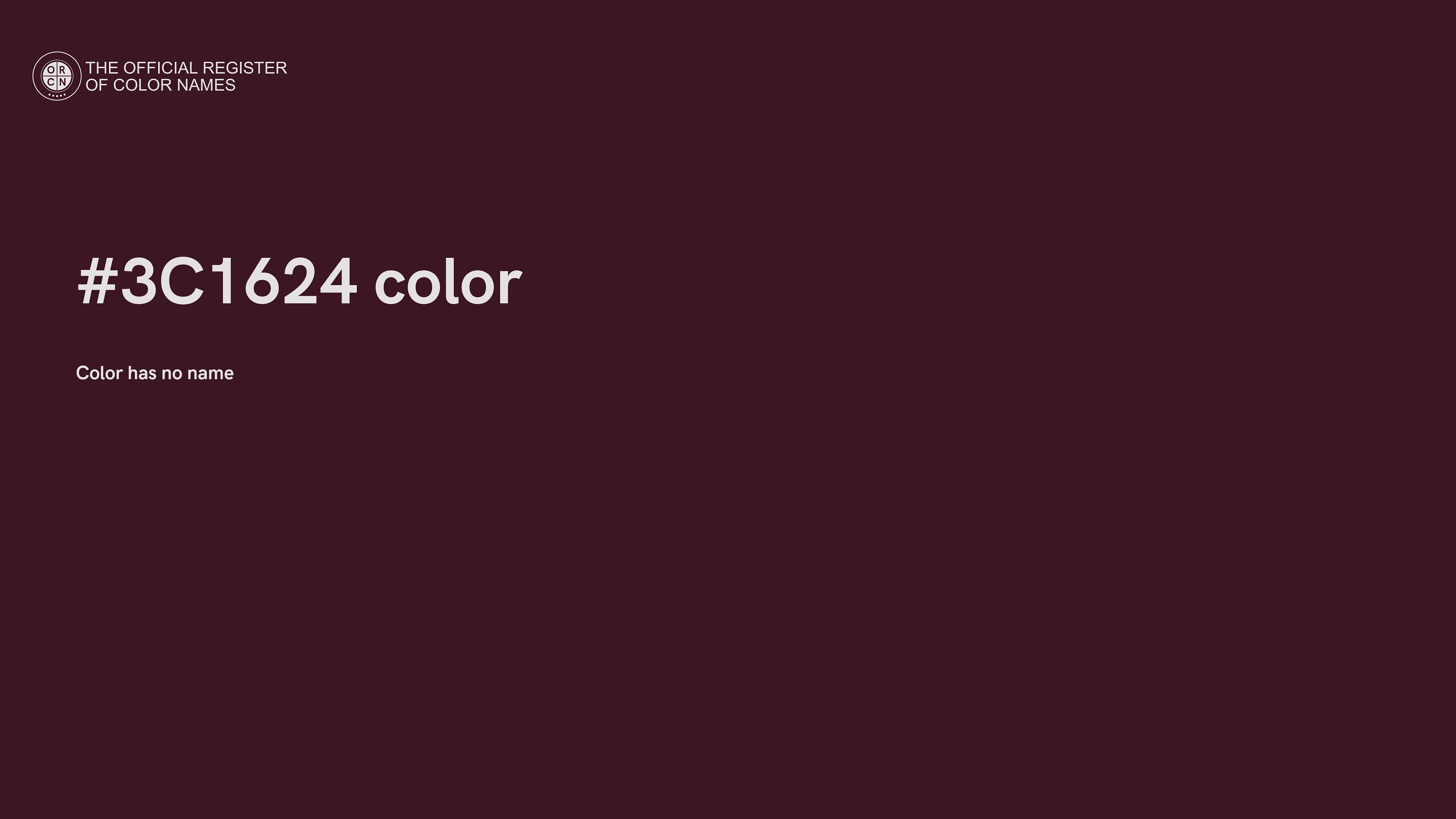 The digital color HEX #3C1624 belongs to the Rose Color Family featuring Moderate Saturation (Saturation Family) and Dark (Brightness Family).