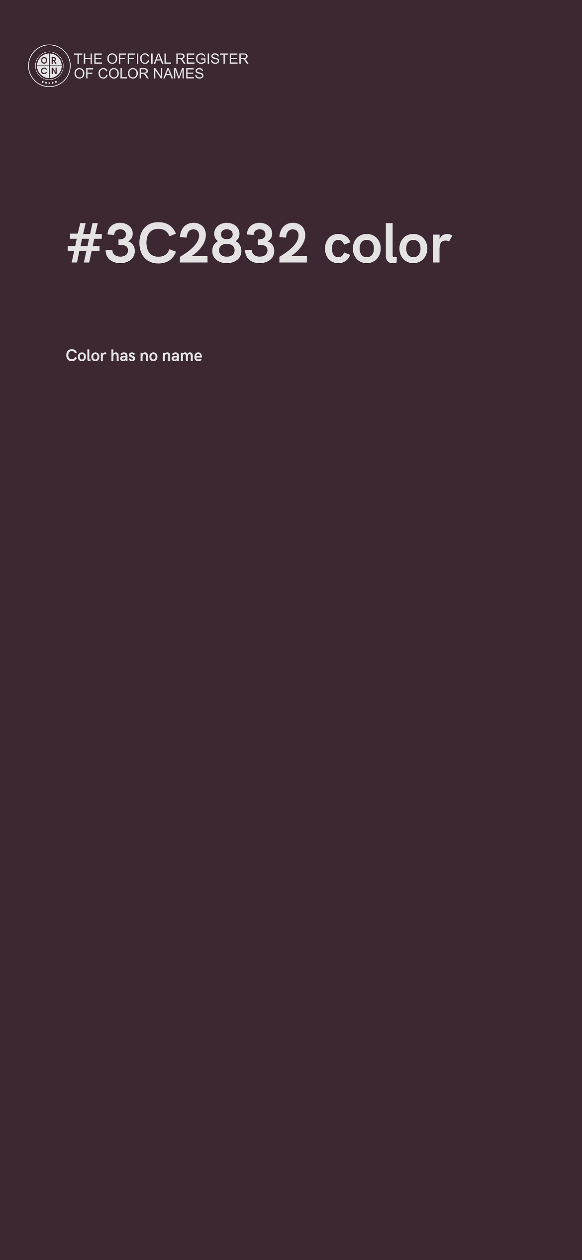 The digital color HEX #3C2832 belongs to the Rose Color Family featuring Low Saturation (Saturation Family) and Dark (Brightness Family).