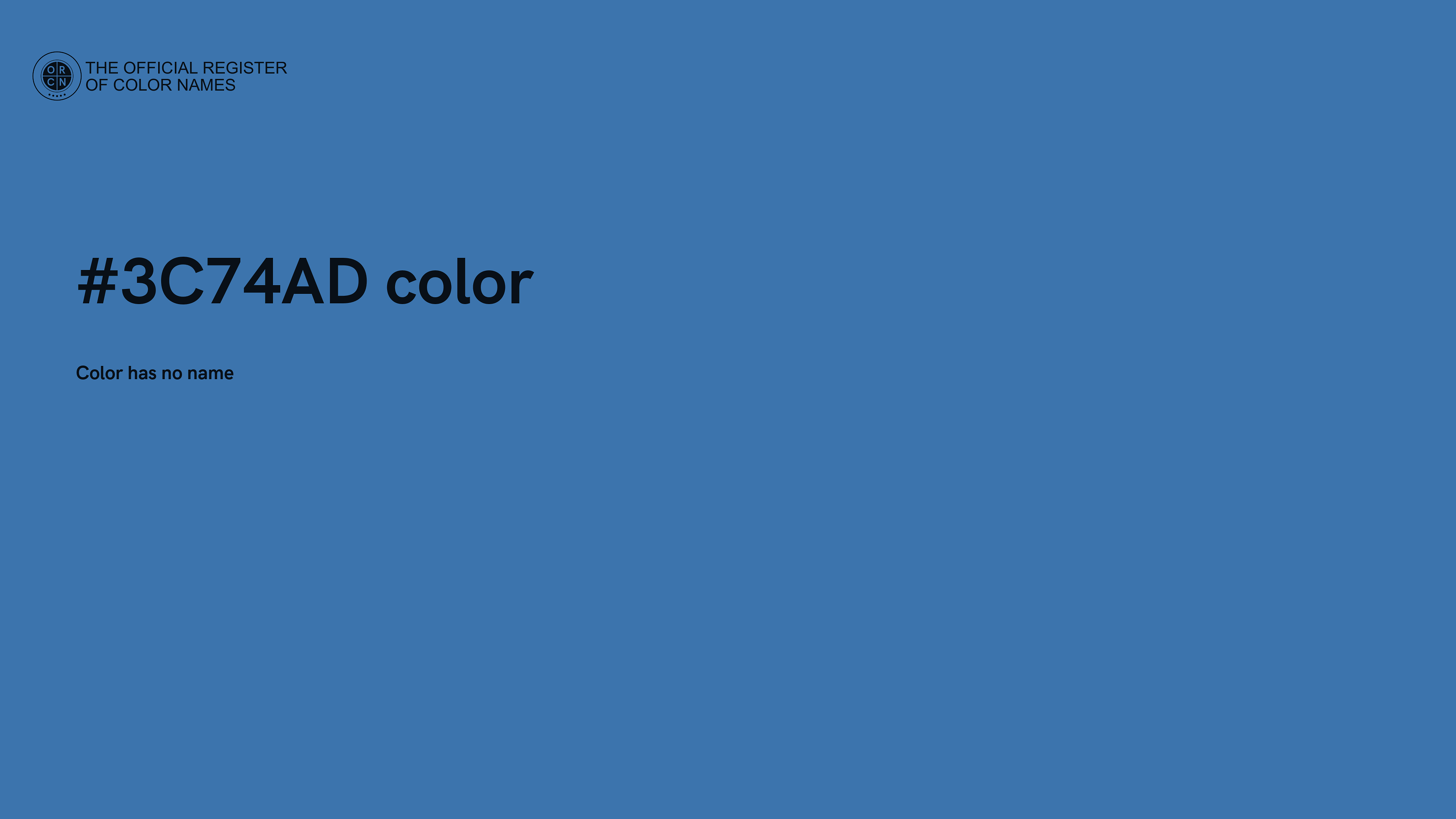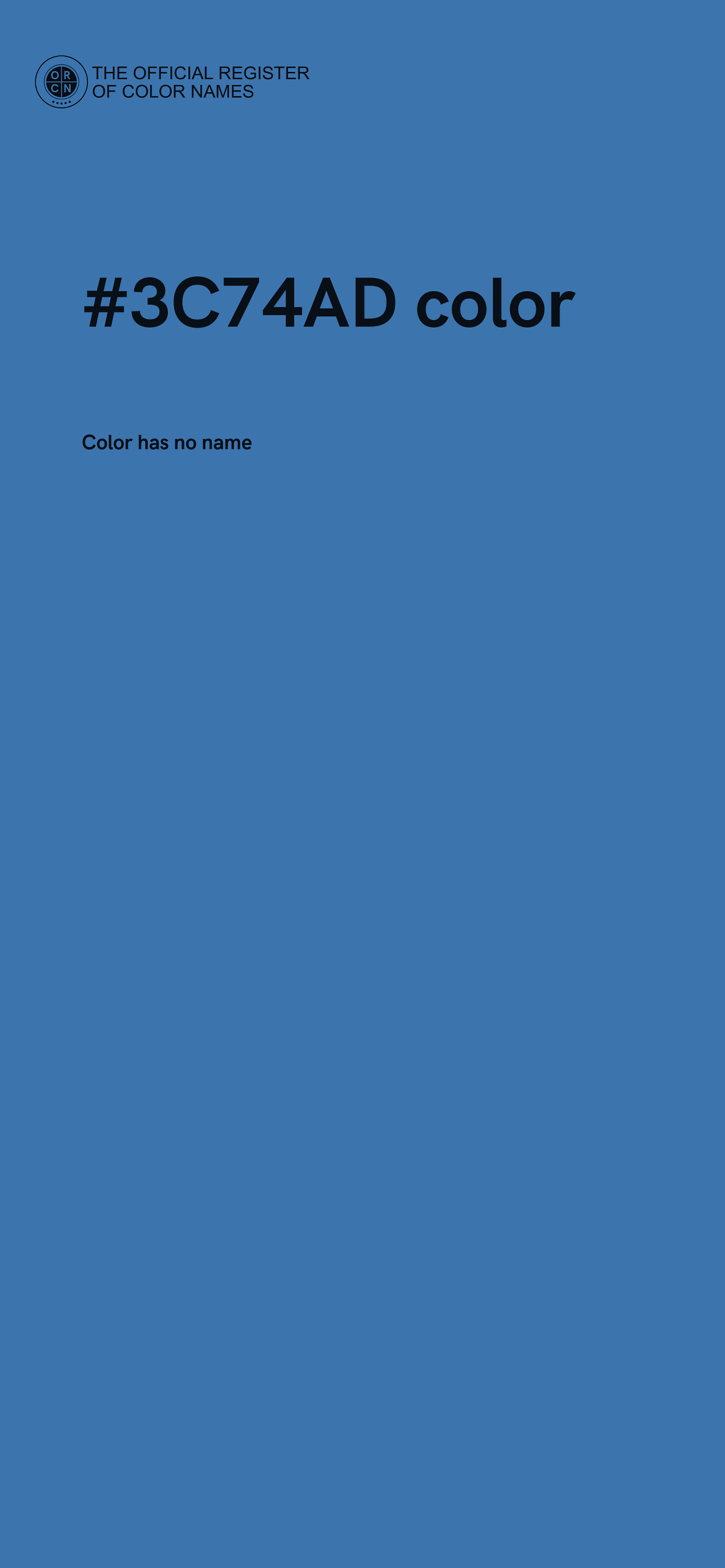 The digital color HEX #3C74AD belongs to the Azure Color Family featuring Moderate Saturation (Saturation Family) and Light (Brightness Family).