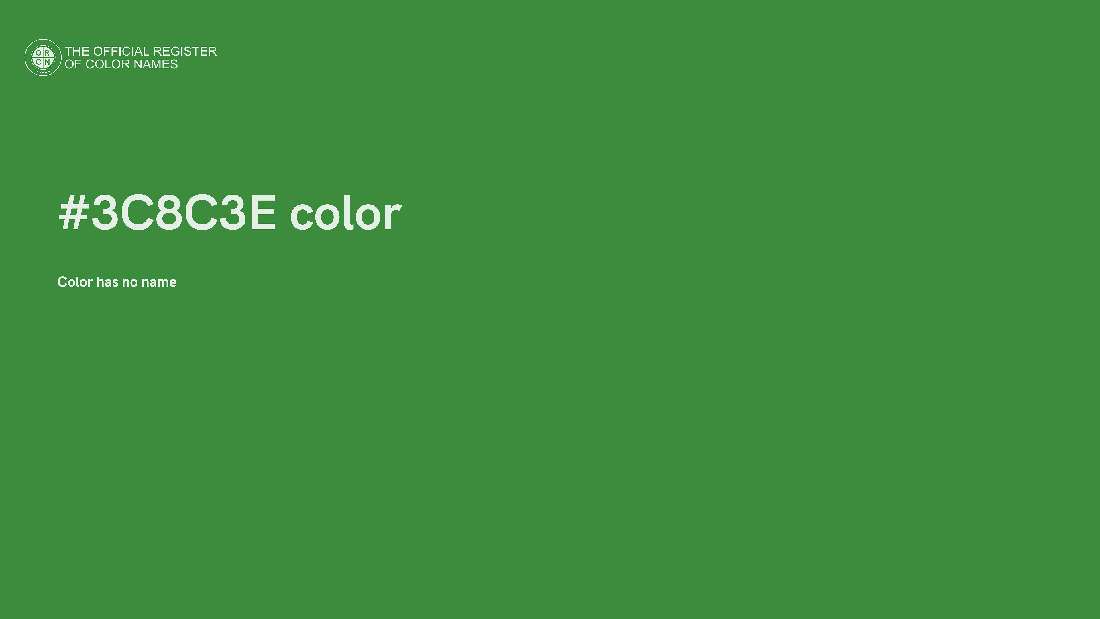 The digital color HEX #3C8C3E belongs to the Green Color Family featuring Moderate Saturation (Saturation Family) and Neutral (Brightness Family).