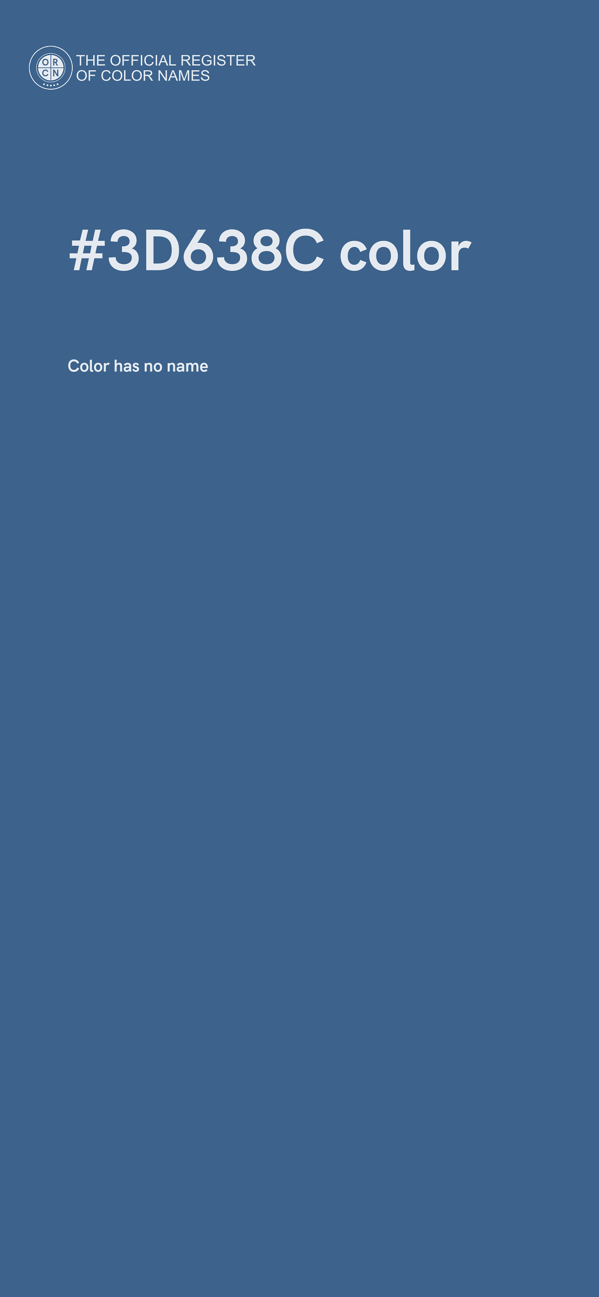 For printing in non digital world, #3D638C is represented in CMYK as 31 Cyan, 16 Magenta, 0 Yellow, and 45 Black (Key) (C:31 M:16 Y:0 K:45).