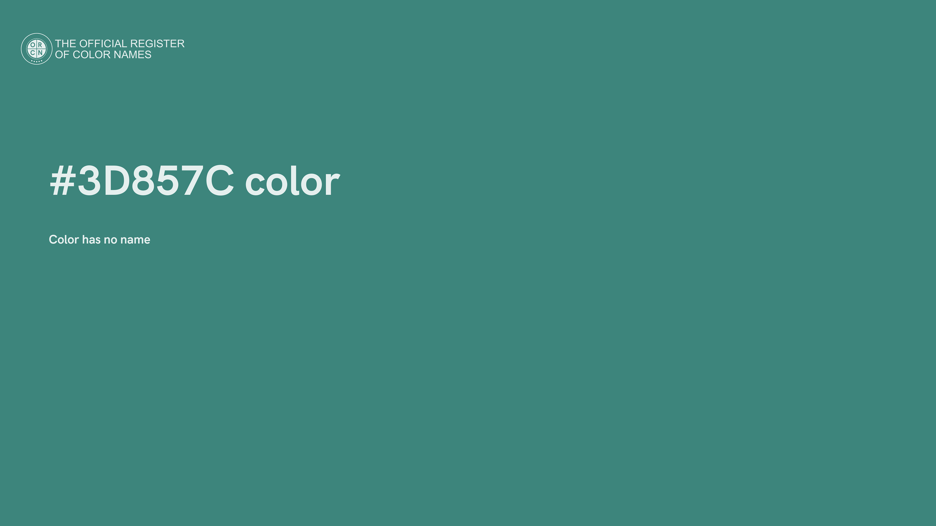 The digital color HEX #3D857C belongs to the Cyan Color Family featuring Mild Saturation (Saturation Family) and Neutral (Brightness Family).