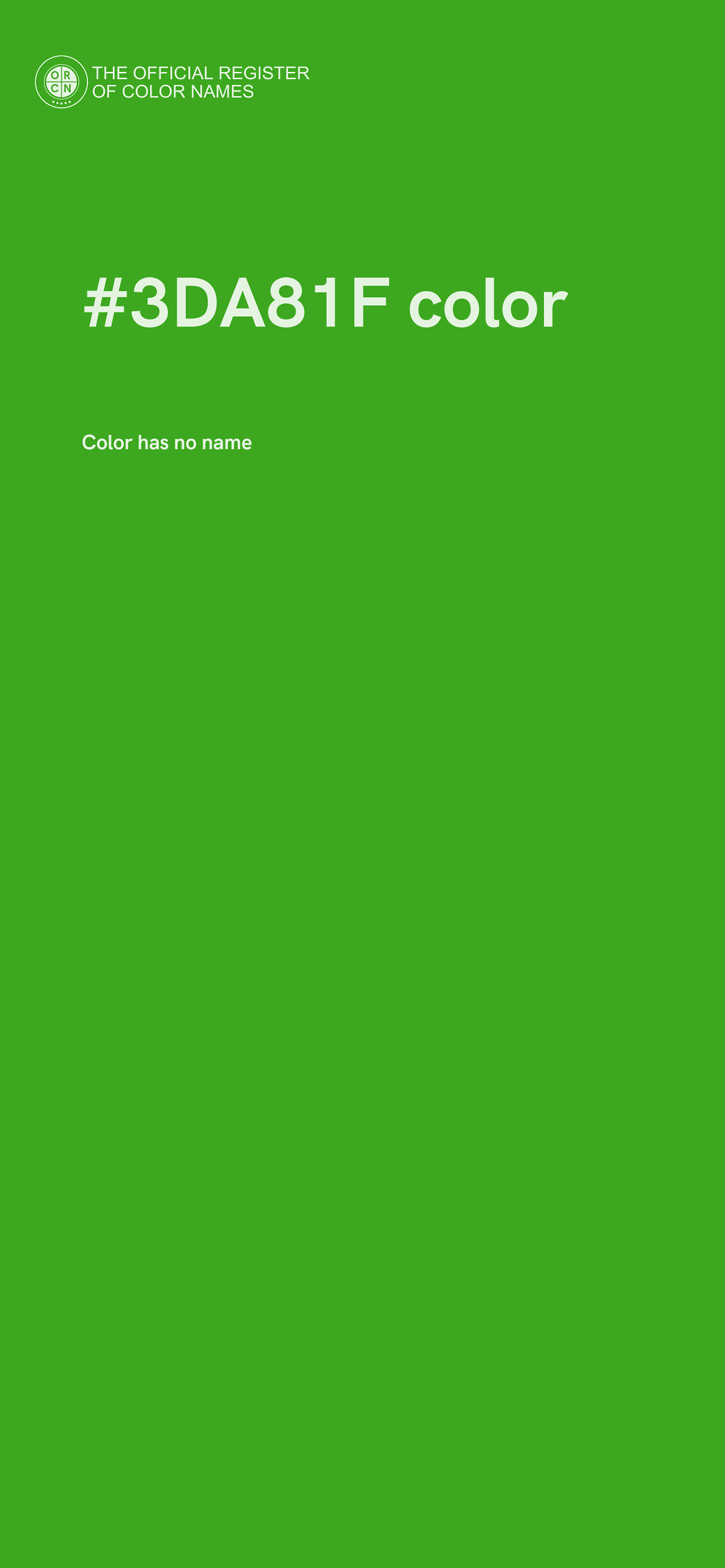 The digital color HEX #3DA81F belongs to the Green Color Family featuring High Saturation (Saturation Family) and Neutral (Brightness Family).