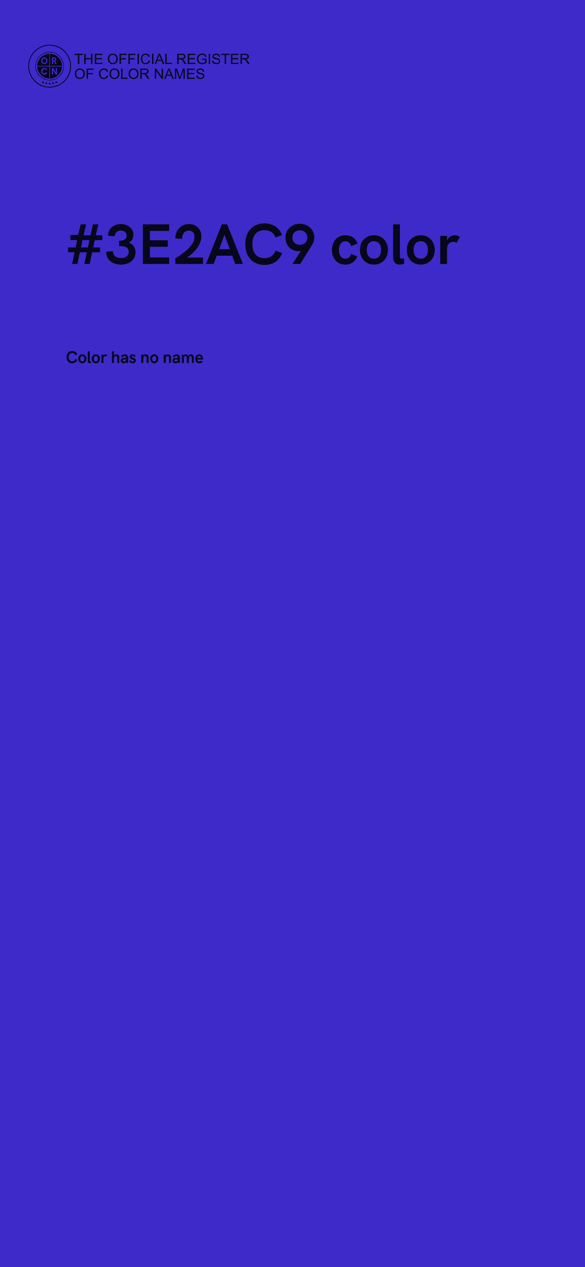 The digital color HEX #3E2AC9 belongs to the Blue Color Family featuring High Saturation (Saturation Family) and Light (Brightness Family).
