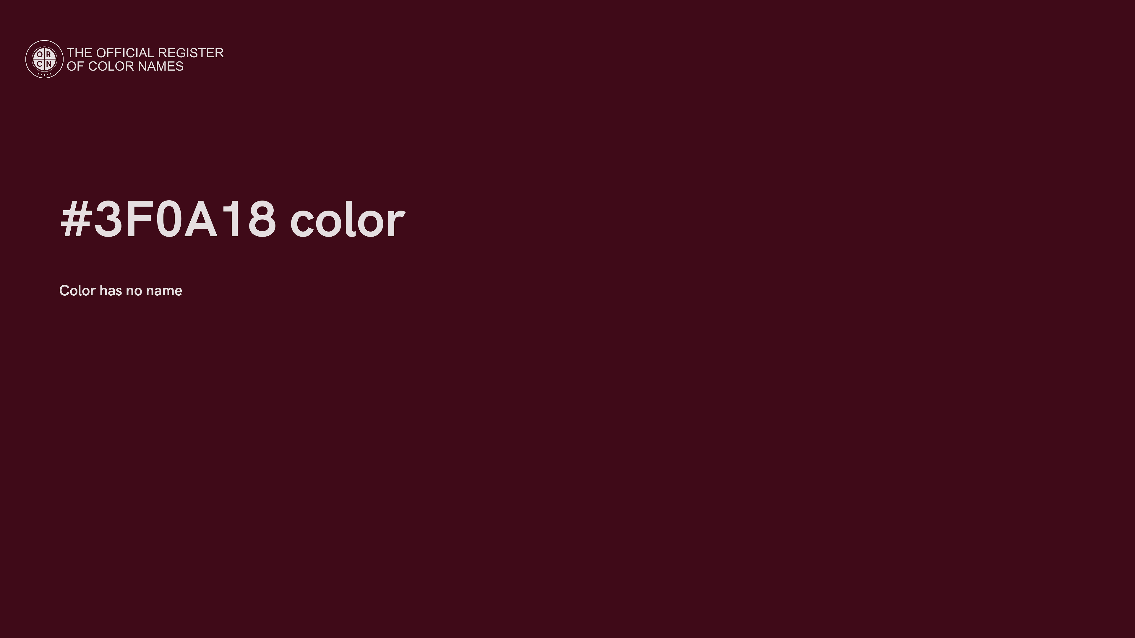 The digital color HEX #3F0A18 belongs to the Rose Color Family featuring High Saturation (Saturation Family) and Dark (Brightness Family).