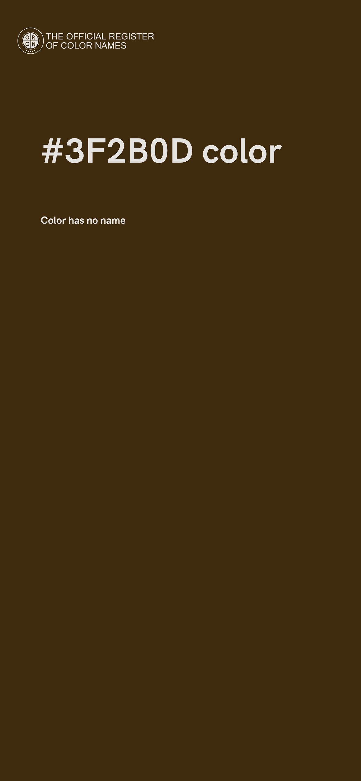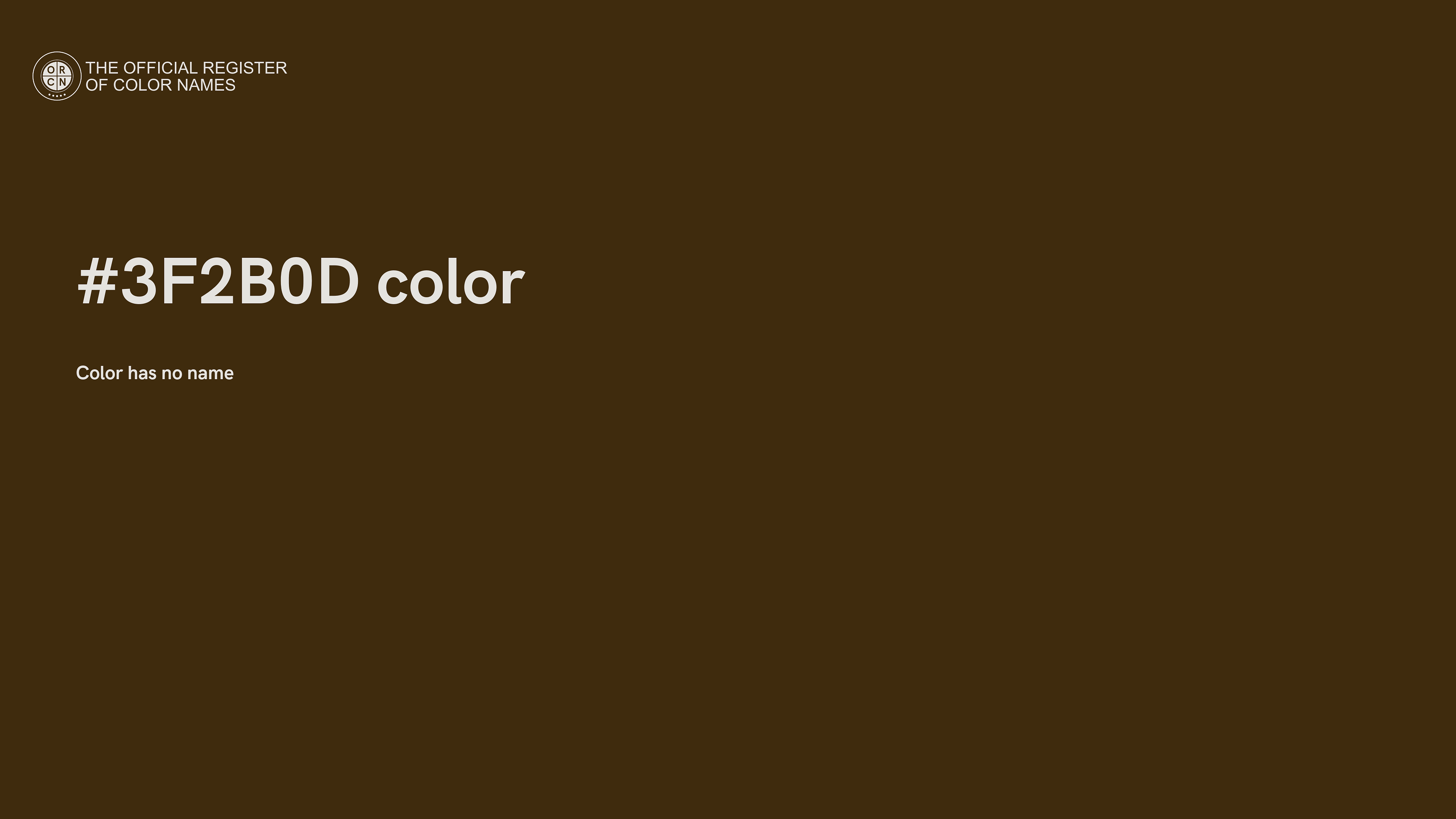 The digital color HEX #3F2B0D belongs to the Orange Color Family featuring High Saturation (Saturation Family) and Dark (Brightness Family).