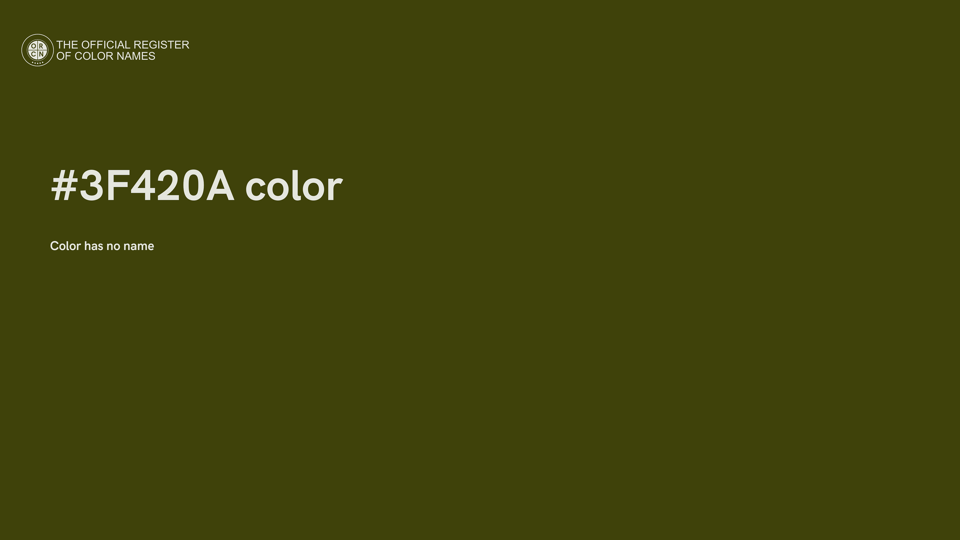 For printing in non digital world, #3F420A is represented in CMYK as 1 Cyan, 0 Magenta, 22 Yellow, and 74 Black (Key) (C:1 M:0 Y:22 K:74).