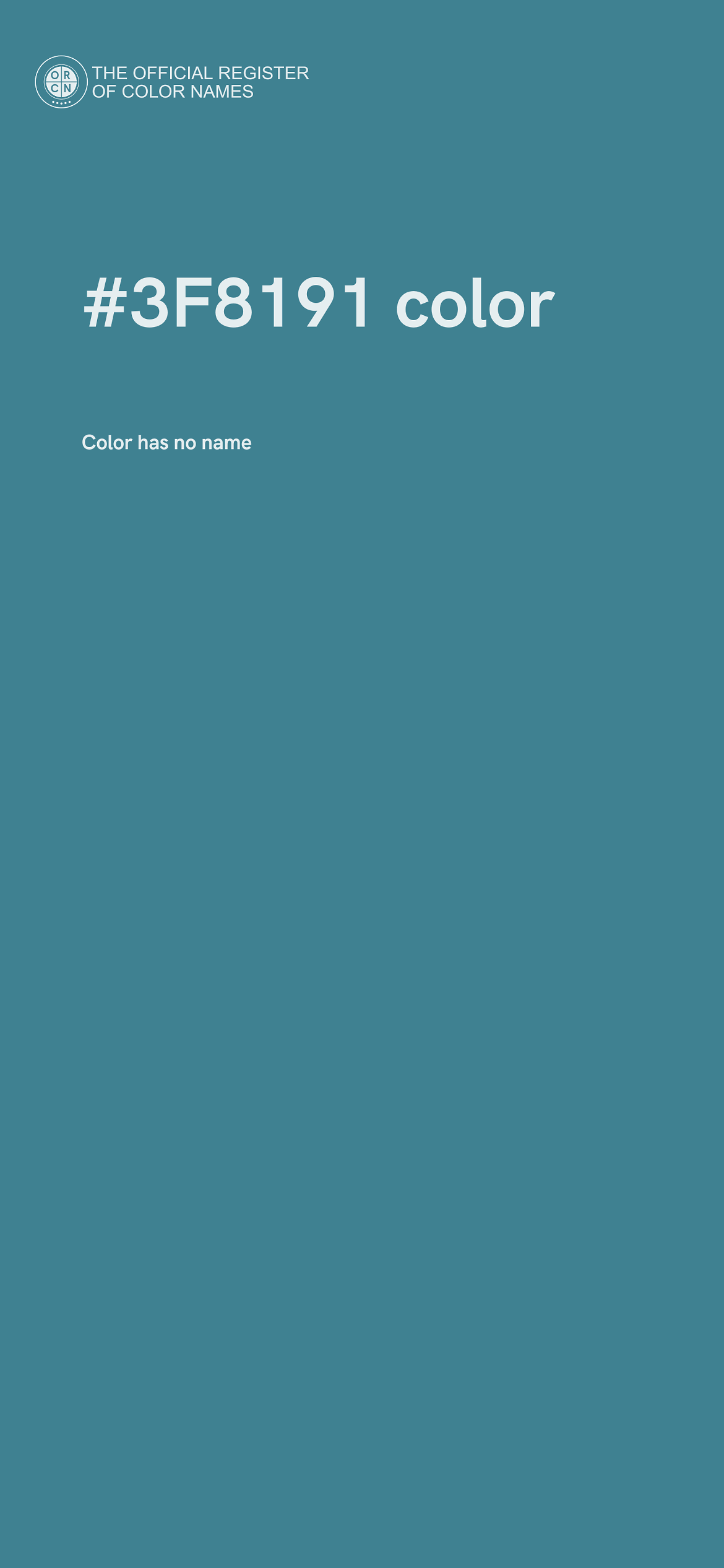 The digital color HEX #3F8191 belongs to the Cyan Color Family featuring Mild Saturation (Saturation Family) and Light (Brightness Family).