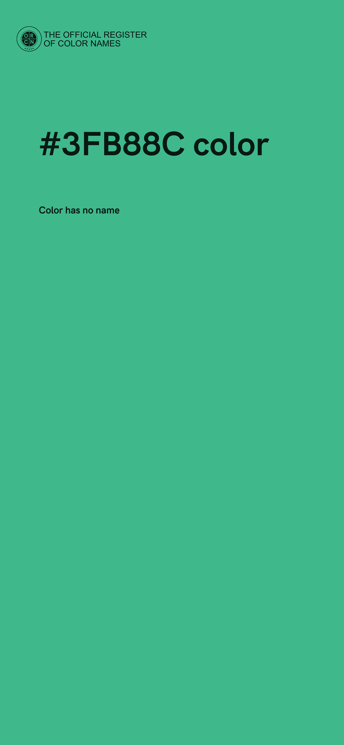 The digital color HEX #3FB88C belongs to the Spring Green Color Family featuring Moderate Saturation (Saturation Family) and Light (Brightness Family).