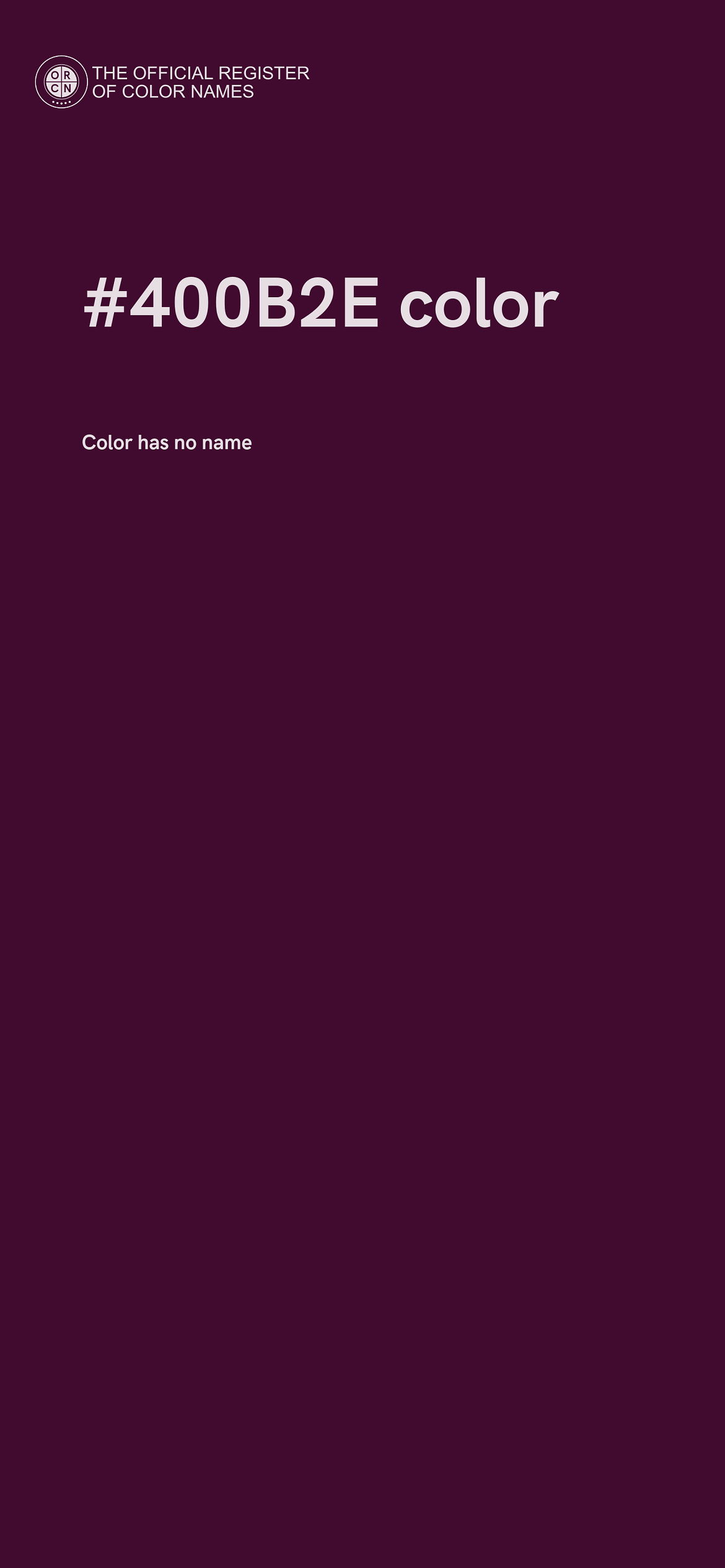 The digital color HEX #400B2E belongs to the Rose Color Family featuring High Saturation (Saturation Family) and Dark (Brightness Family).