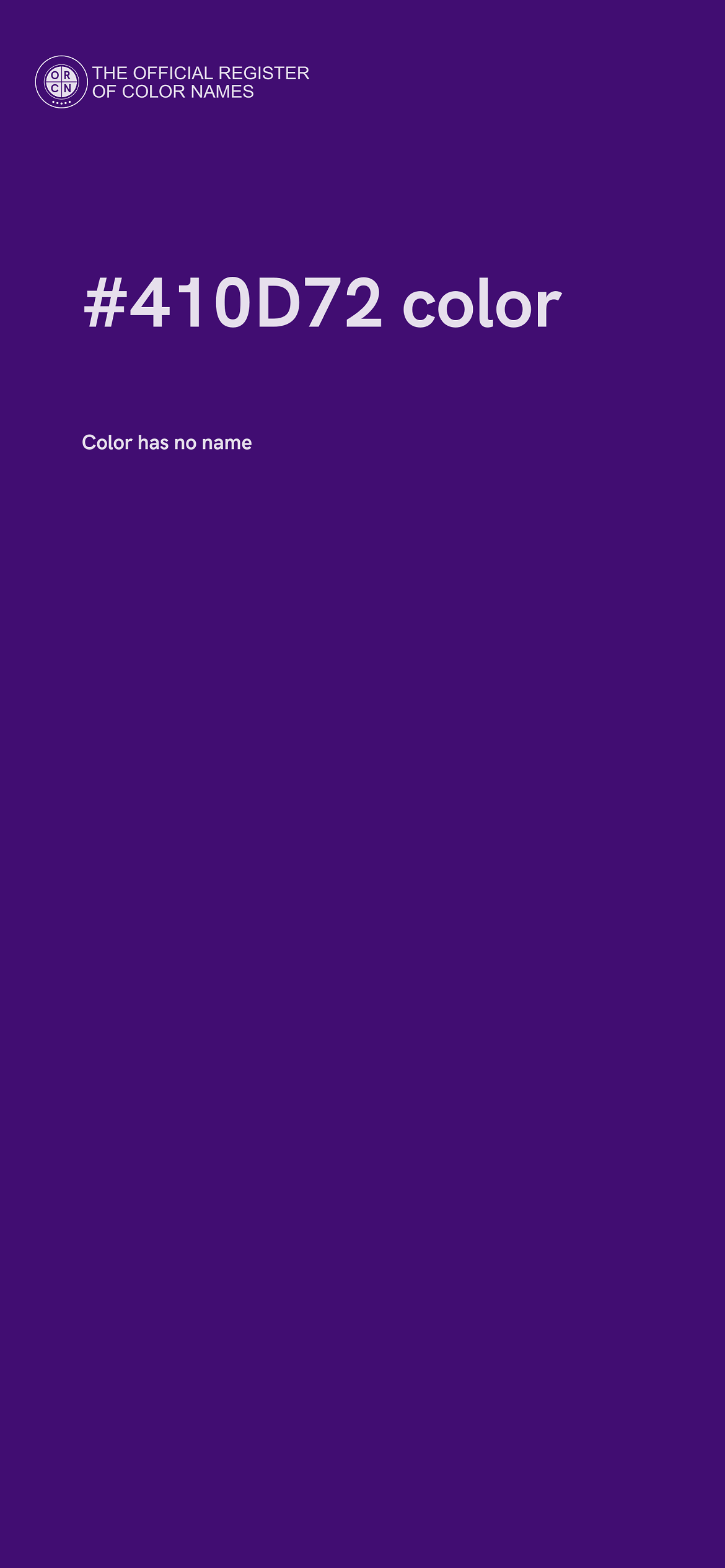 The digital color HEX #410D72 belongs to the Violet Color Family featuring High Saturation (Saturation Family) and Neutral (Brightness Family).
