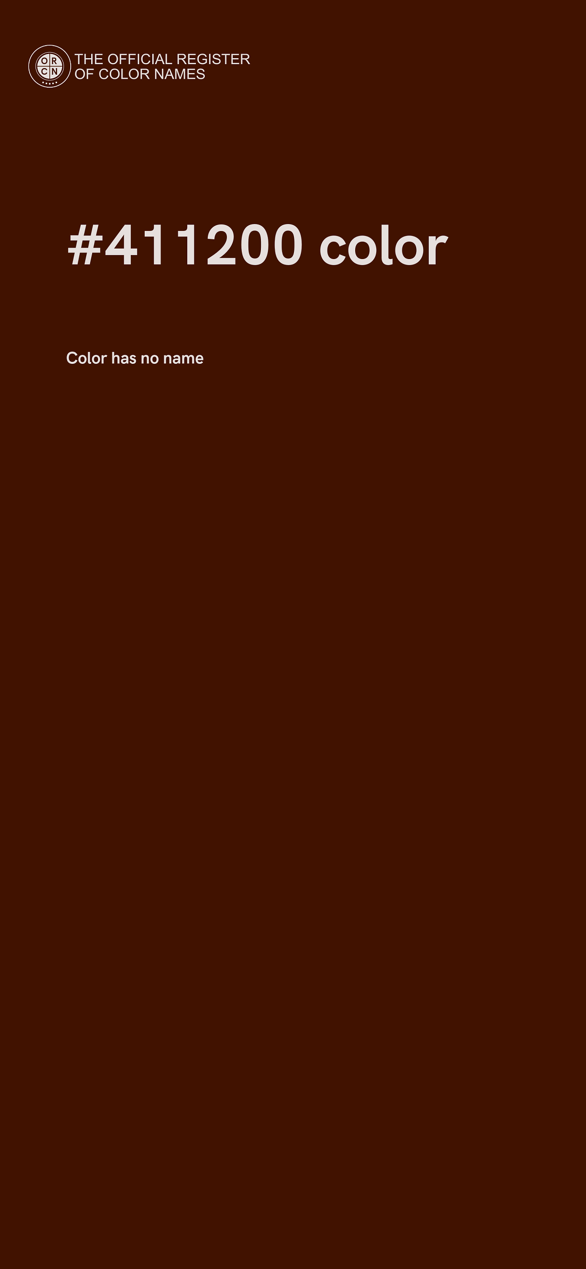 The digital color HEX #411200 belongs to the Orange Color Family featuring Full Saturation (Saturation Family) and Dark (Brightness Family).