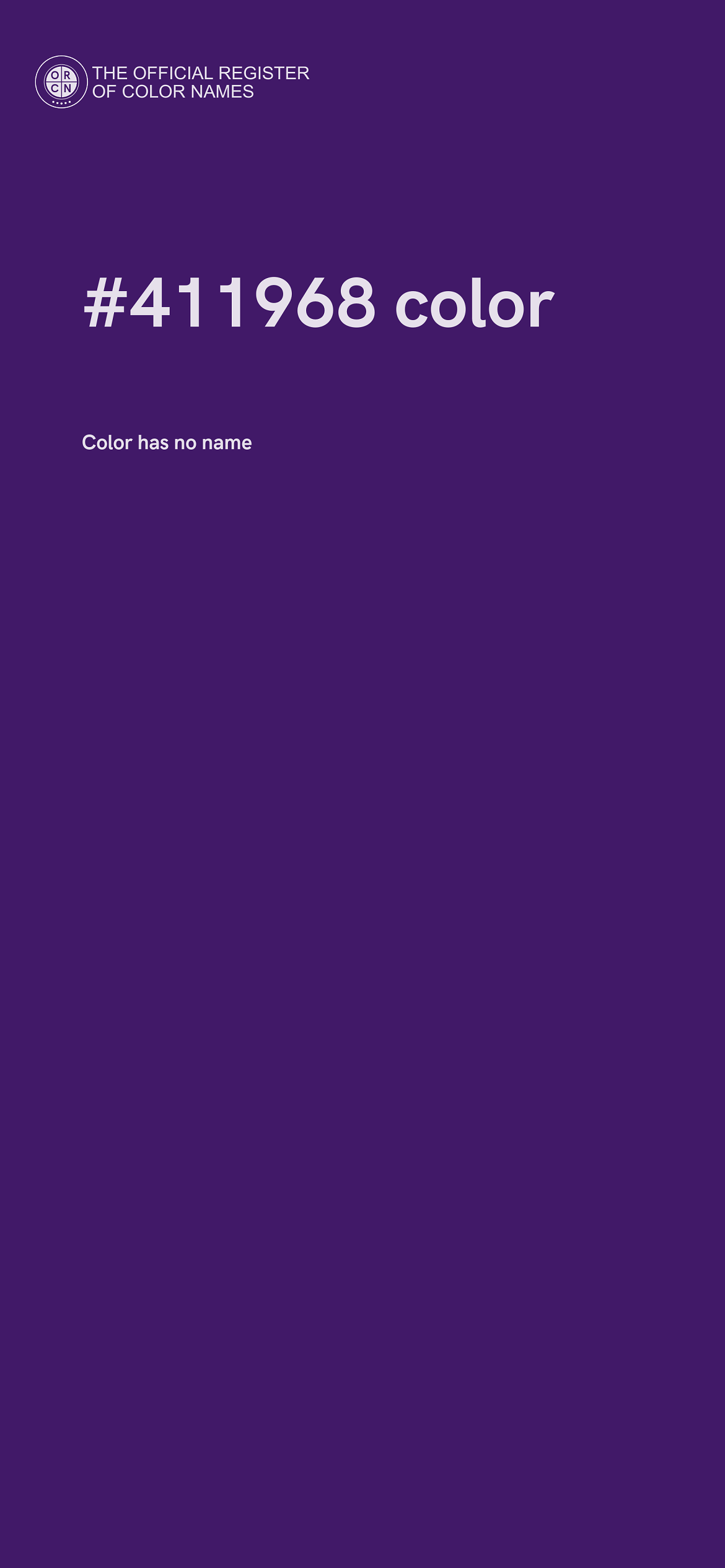 The digital color HEX #411968 belongs to the Violet Color Family featuring High Saturation (Saturation Family) and Neutral (Brightness Family).