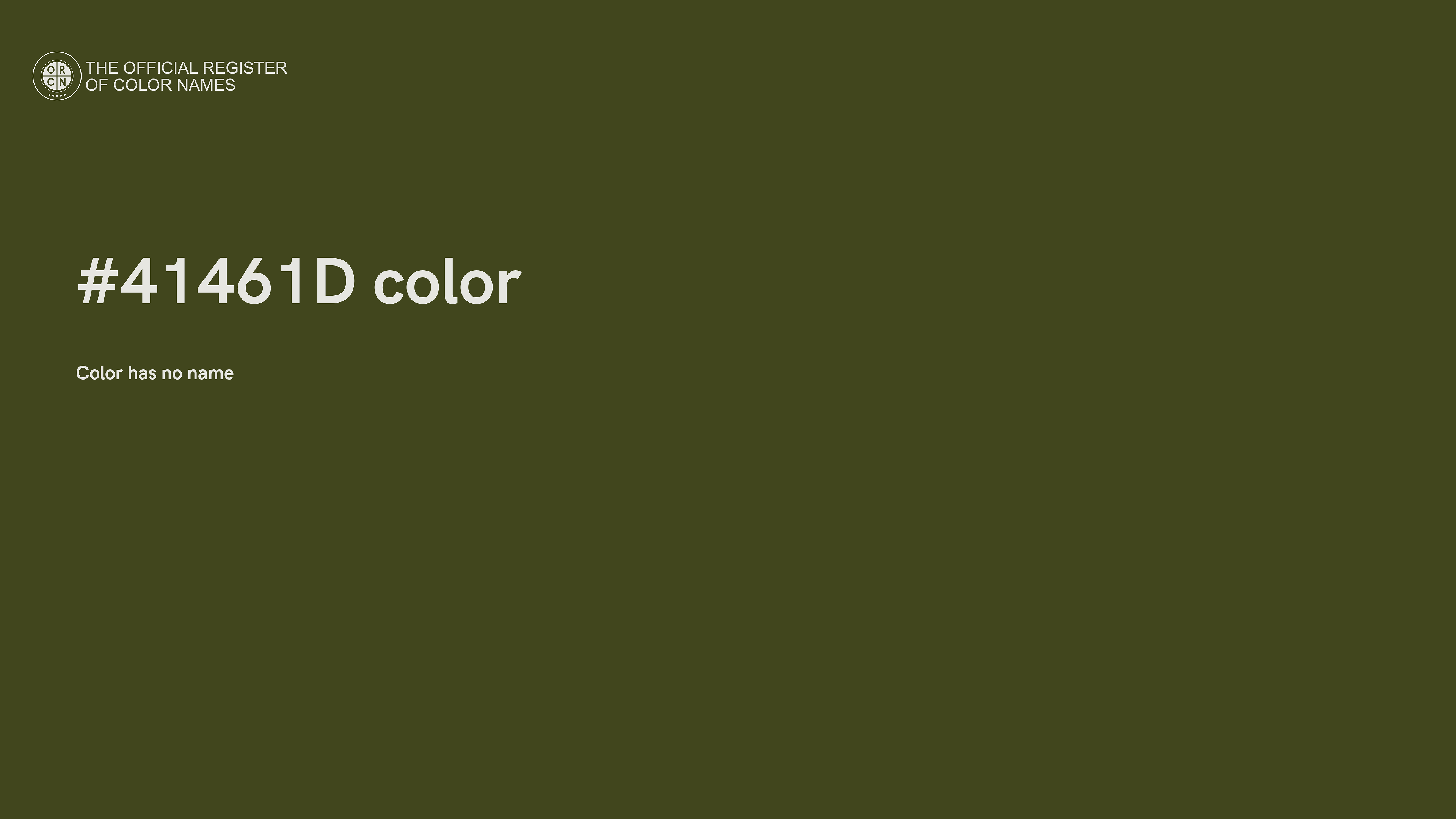 The digital color HEX #41461D belongs to the Yellow Color Family featuring Moderate Saturation (Saturation Family) and Dark (Brightness Family).