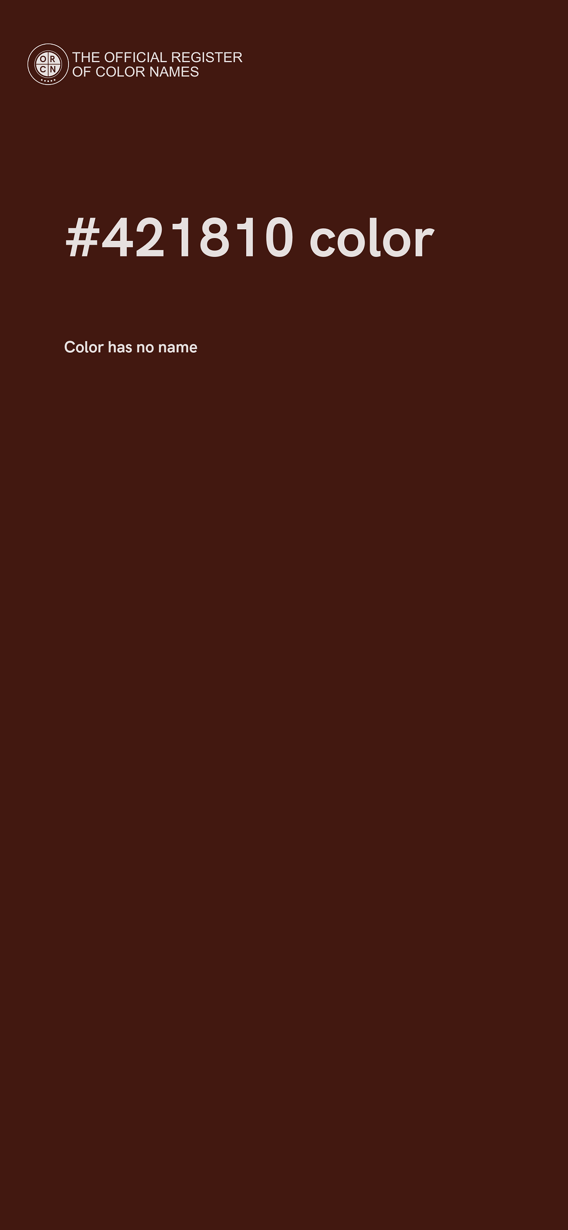 The digital color HEX #421810 belongs to the Red Color Family featuring High Saturation (Saturation Family) and Dark (Brightness Family).