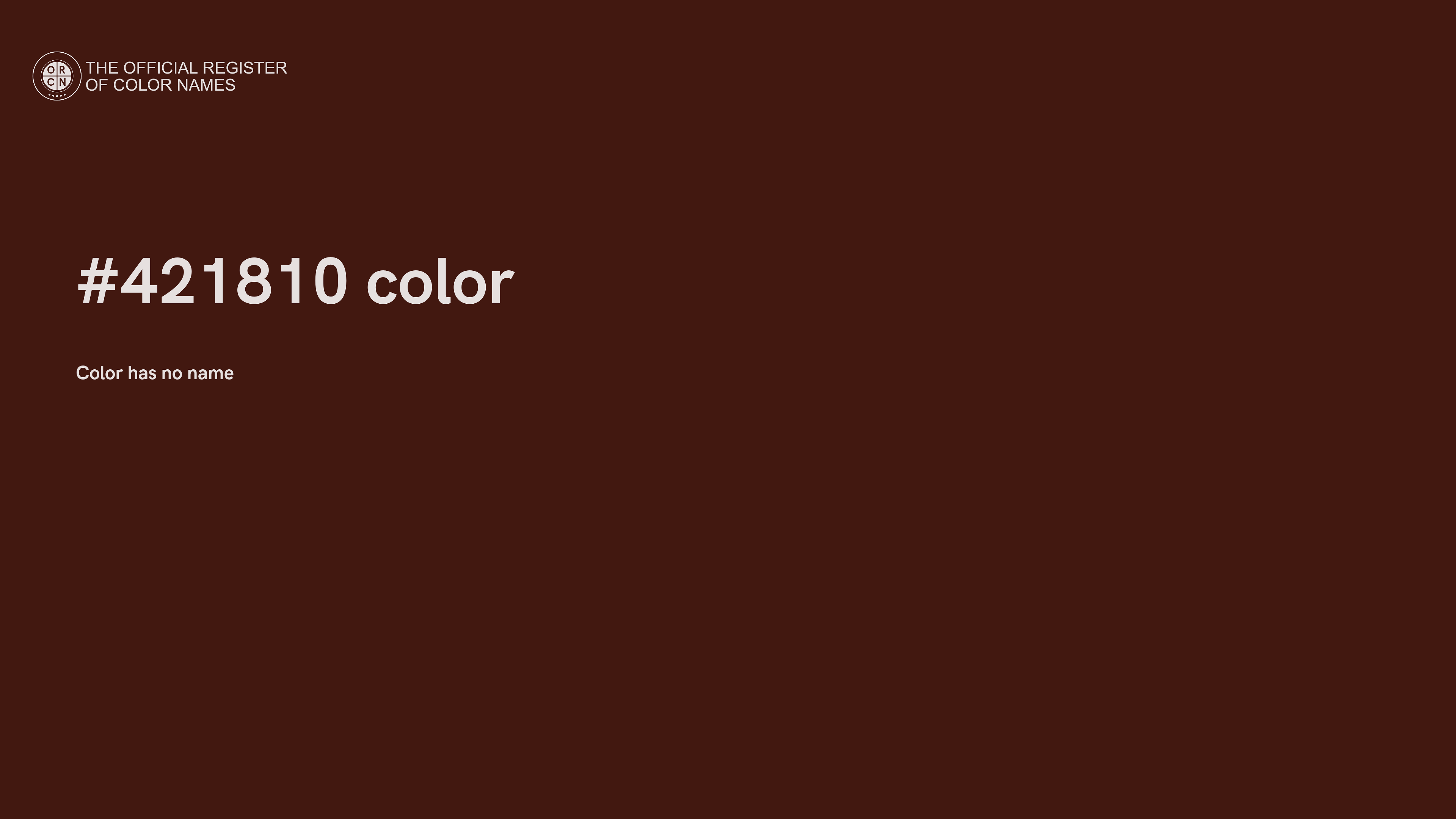 For printing in non digital world, #421810 is represented in CMYK as 0 Cyan, 16 Magenta, 20 Yellow, and 74 Black (Key) (C:0 M:16 Y:20 K:74).