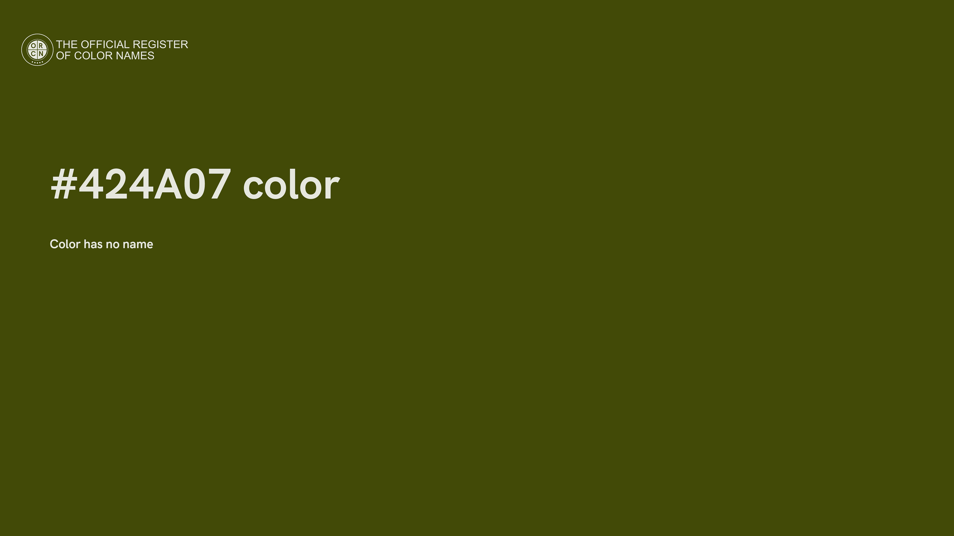 The digital color HEX #424A07 belongs to the Yellow Color Family featuring High Saturation (Saturation Family) and Dark (Brightness Family).