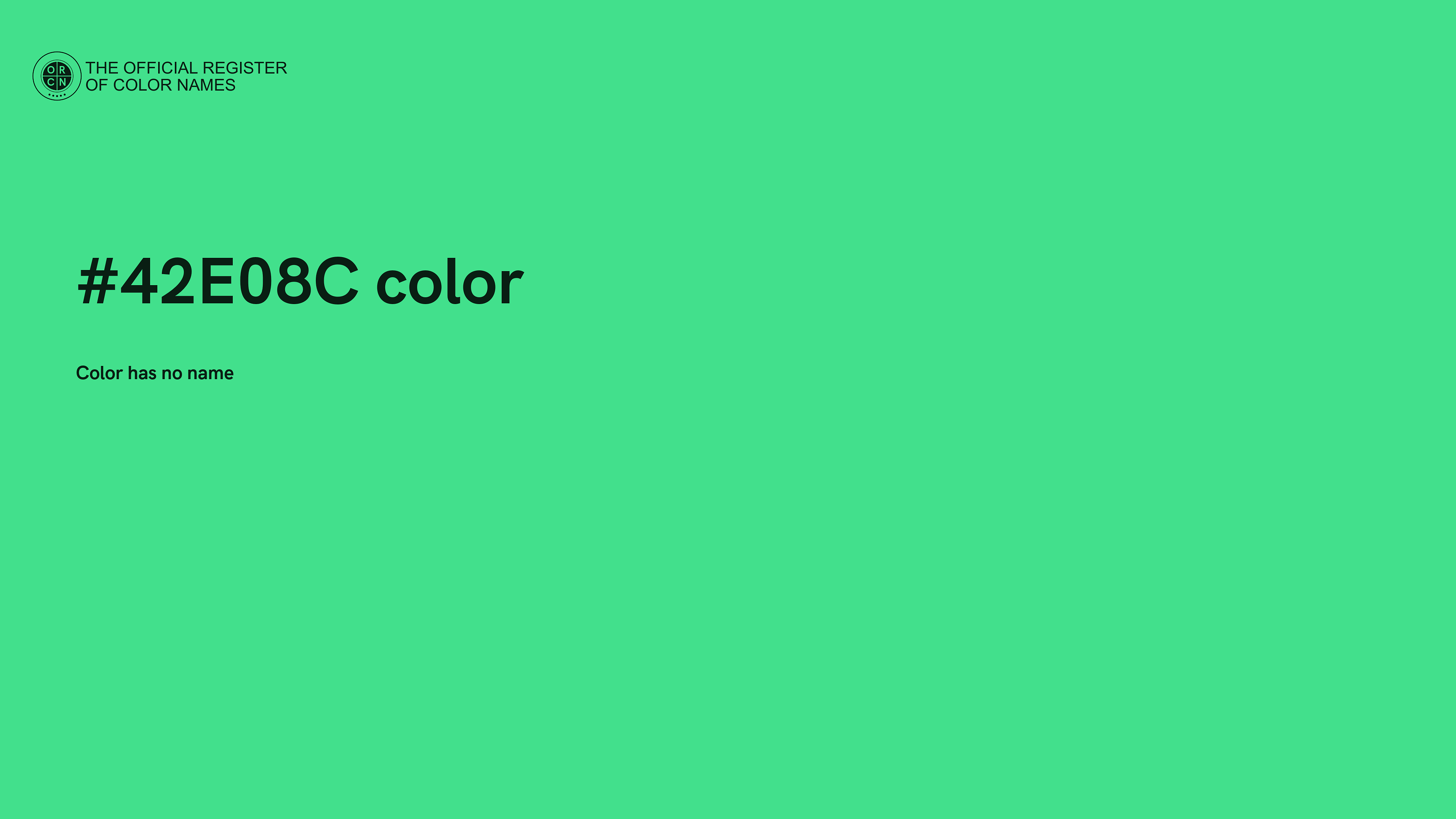 The digital color HEX #42E08C belongs to the Spring Green Color Family featuring High Saturation (Saturation Family) and Light (Brightness Family).