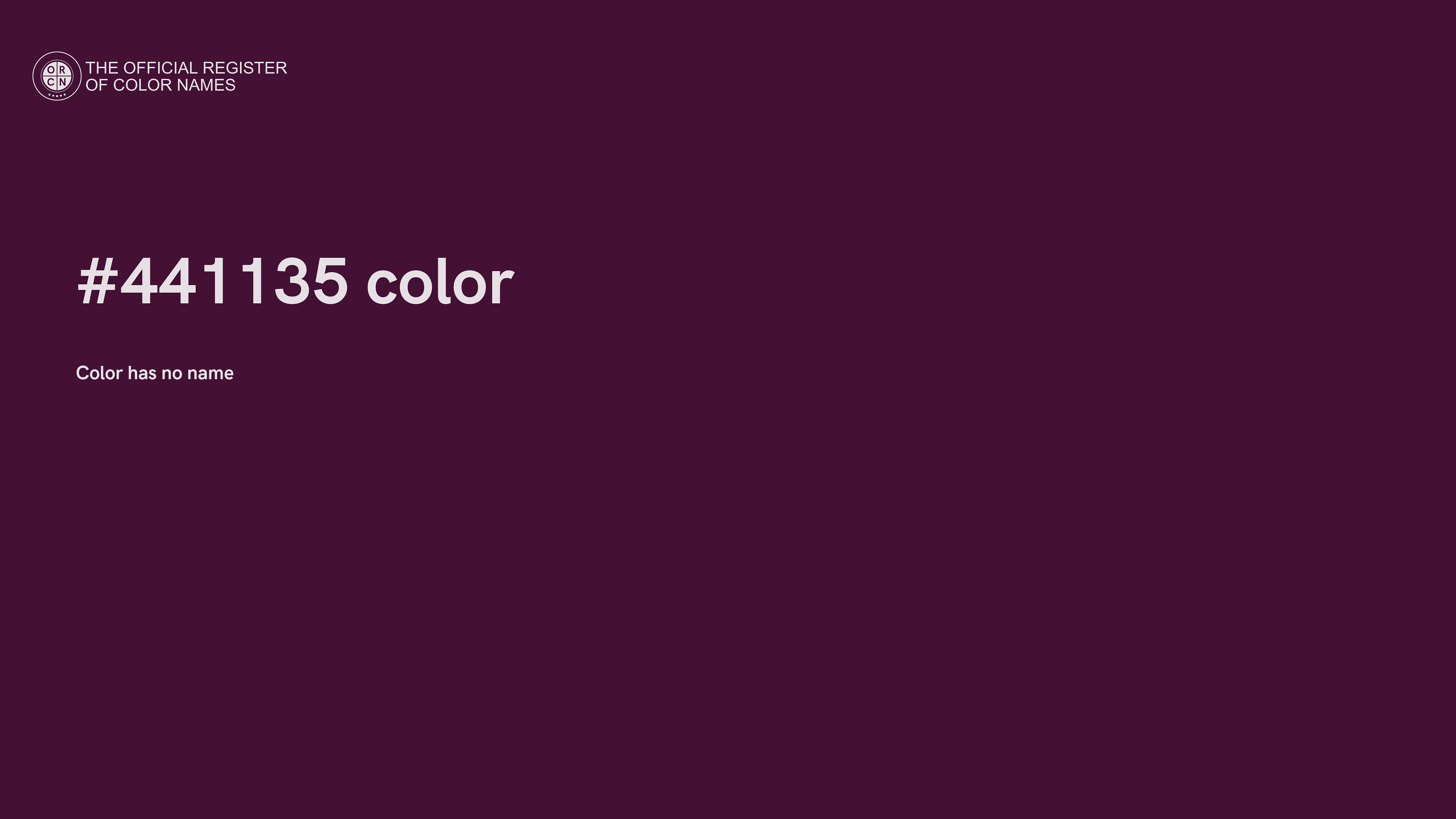 For printing in non digital world, #441135 is represented in CMYK as 0 Cyan, 20 Magenta, 6 Yellow, and 73 Black (Key) (C:0 M:20 Y:6 K:73).