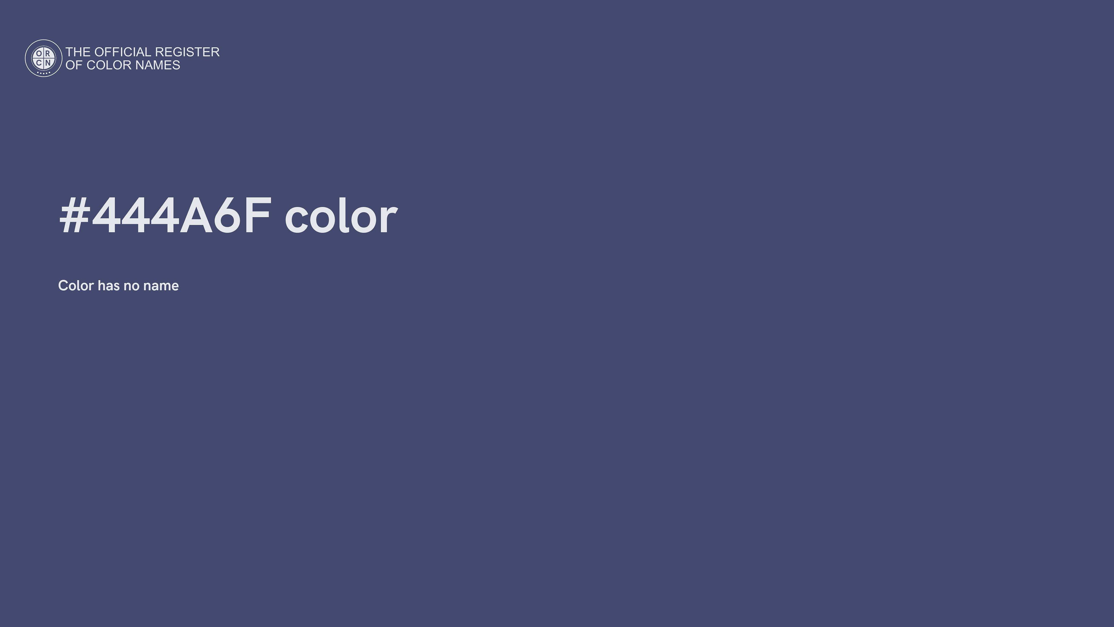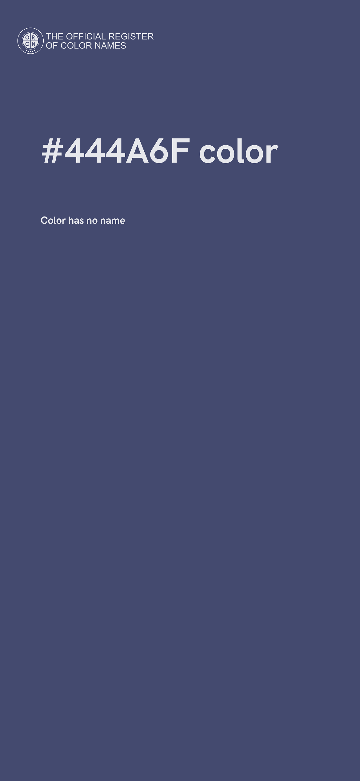 The digital color HEX #444A6F belongs to the Blue Color Family featuring Low Saturation (Saturation Family) and Neutral (Brightness Family).