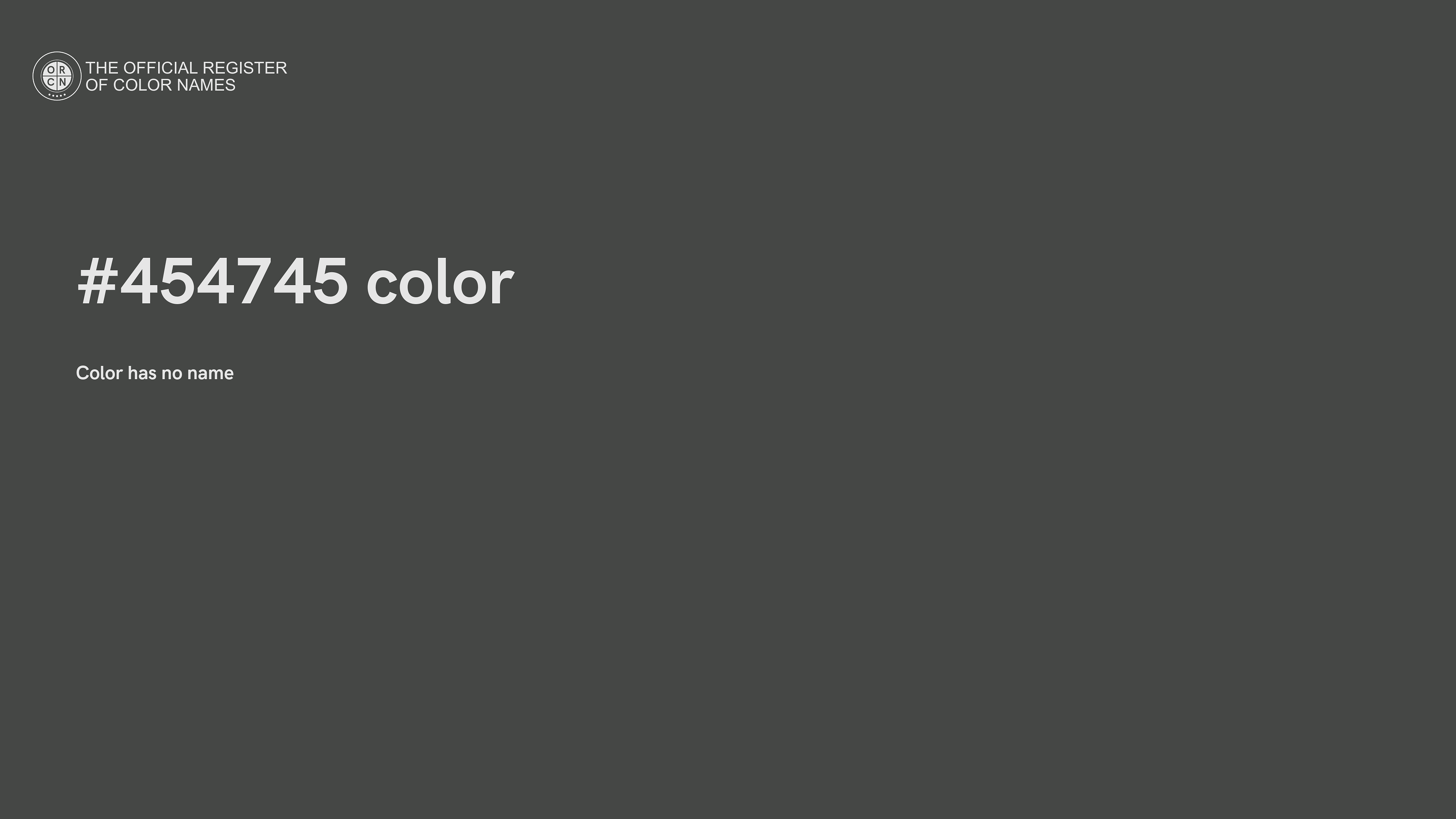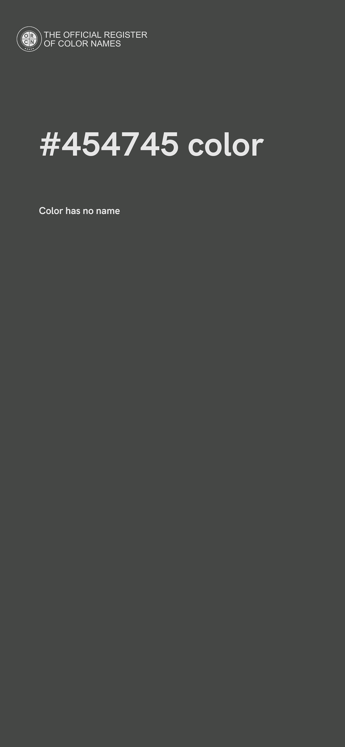 For printing in non digital world, #454745 is represented in CMYK as 1 Cyan, 0 Magenta, 1 Yellow, and 72 Black (Key) (C:1 M:0 Y:1 K:72).