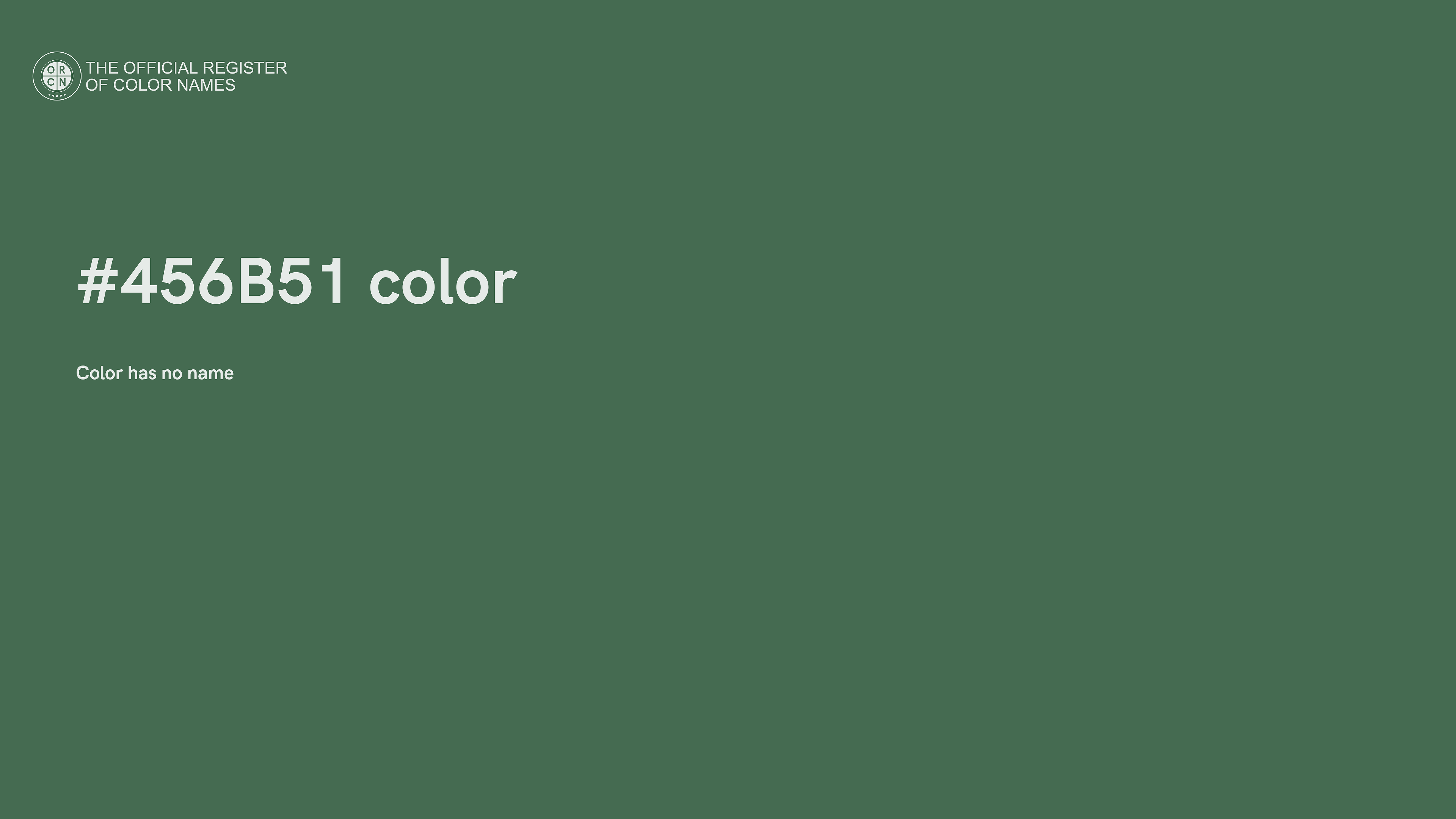 The digital color HEX #456B51 belongs to the Spring Green Color Family featuring Low Saturation (Saturation Family) and Neutral (Brightness Family).