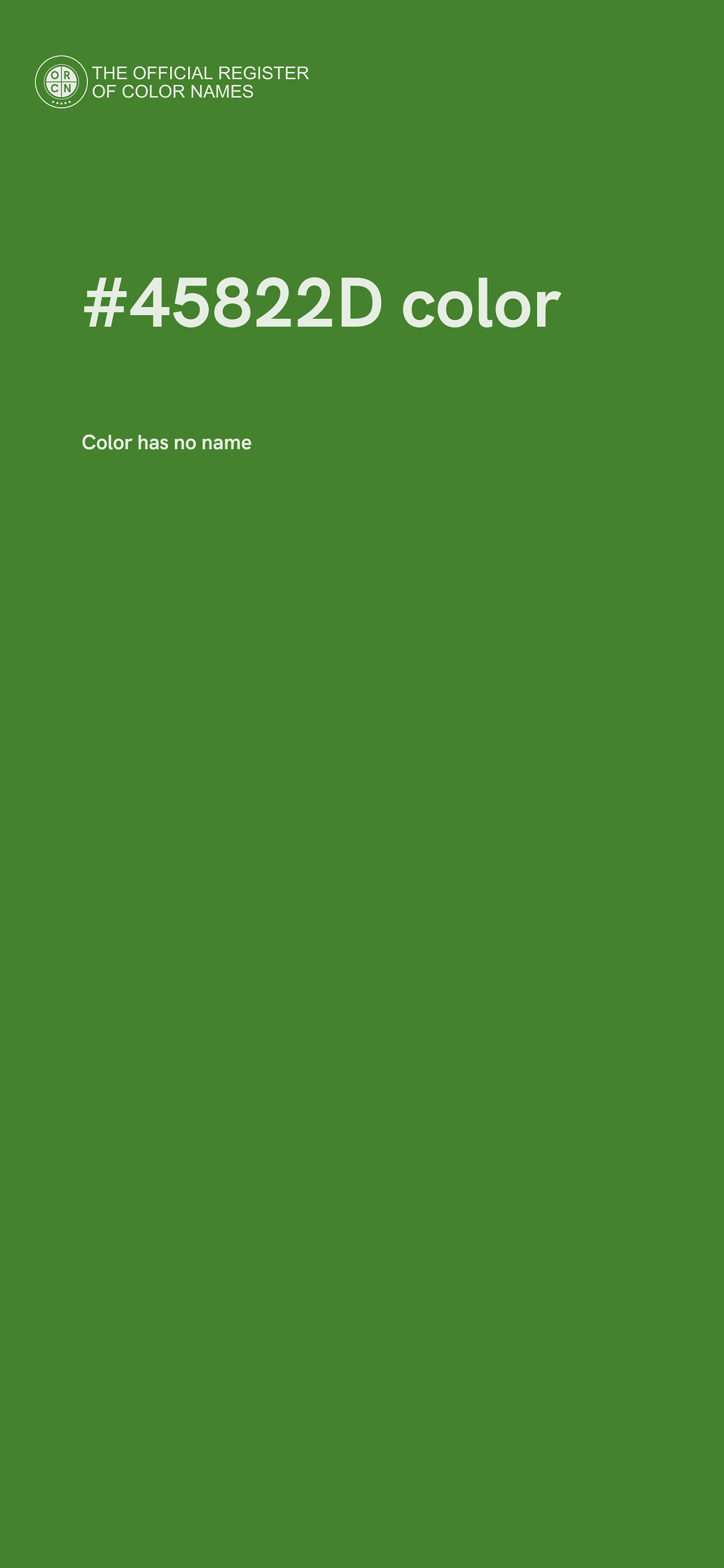 The digital color HEX #45822D belongs to the Chartreuse Color Family featuring Moderate Saturation (Saturation Family) and Neutral (Brightness Family).