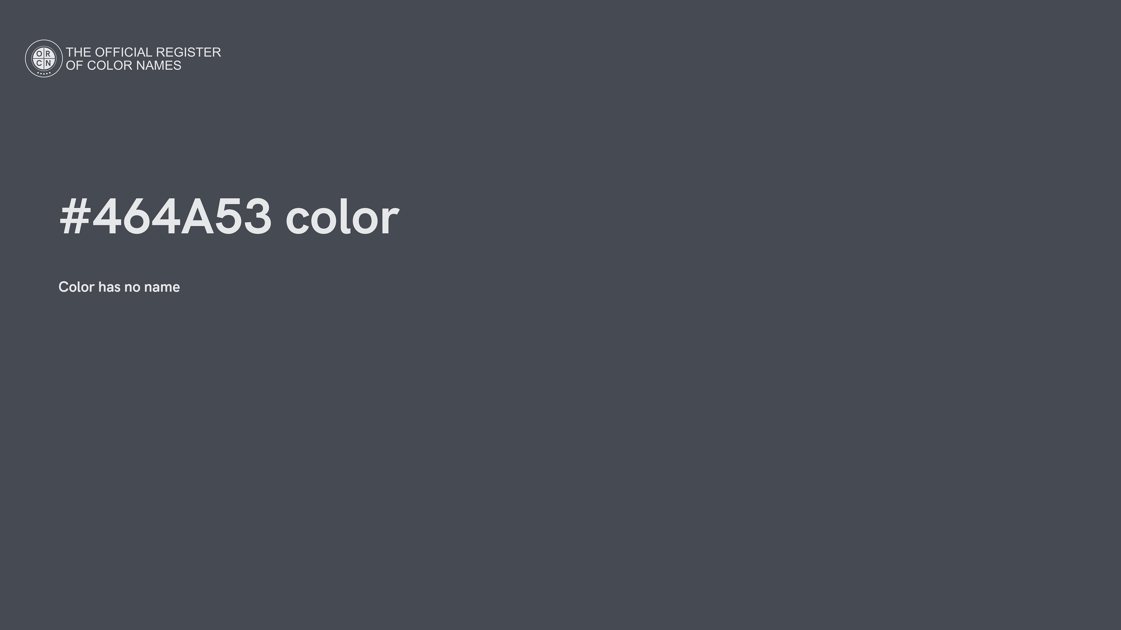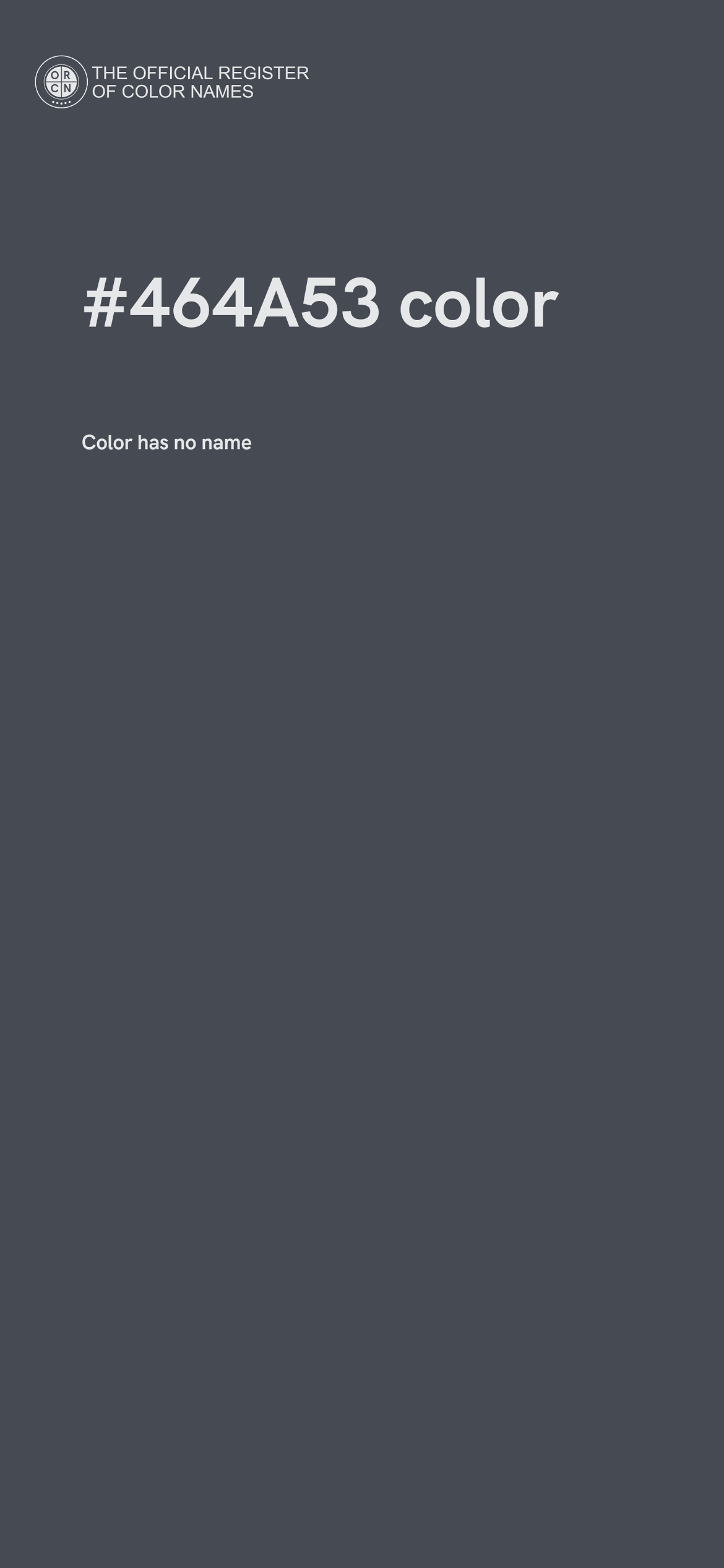 For printing in non digital world, #464A53 is represented in CMYK as 5 Cyan, 4 Magenta, 0 Yellow, and 67 Black (Key) (C:5 M:4 Y:0 K:67).