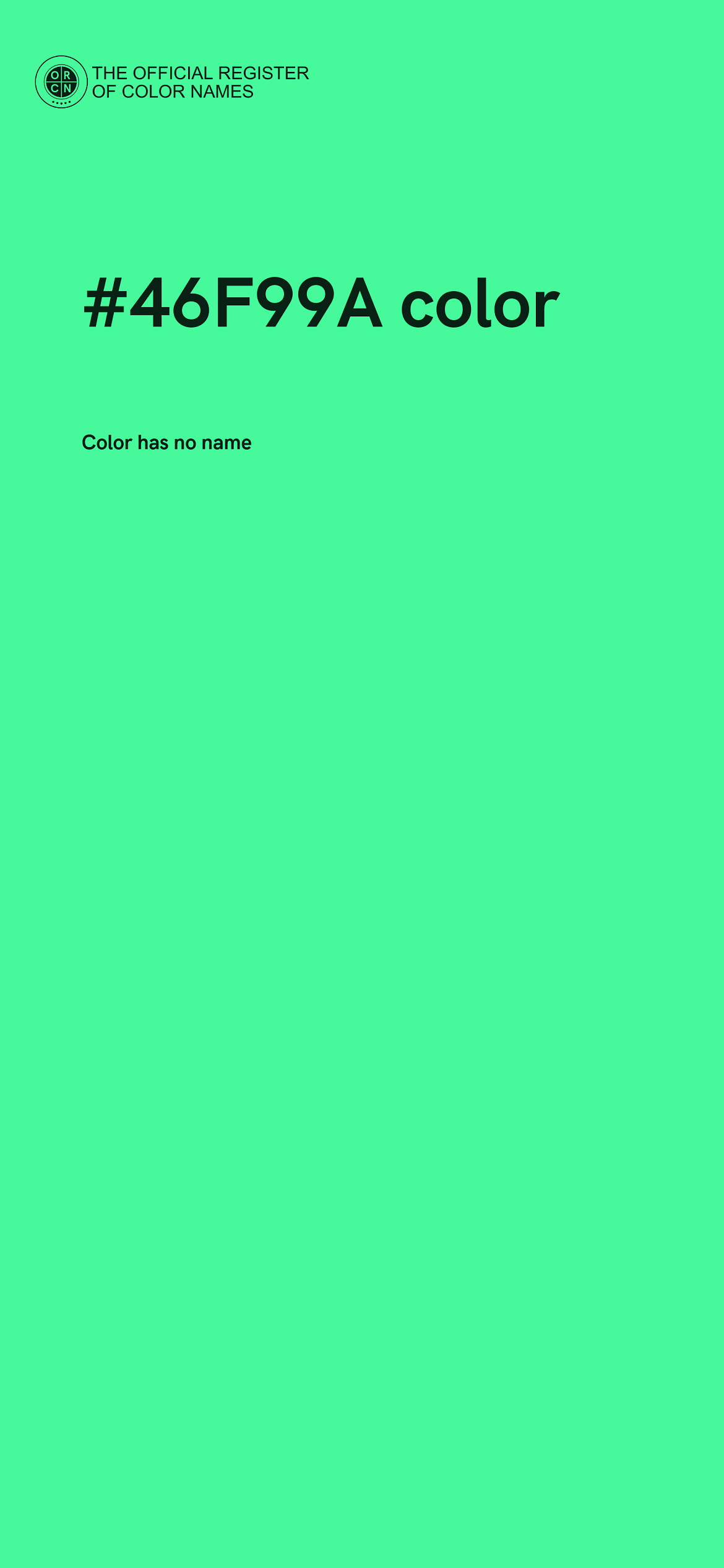 The digital color HEX #46F99A belongs to the Spring Green Color Family featuring Full Saturation (Saturation Family) and Very Light (Brightness Family).
