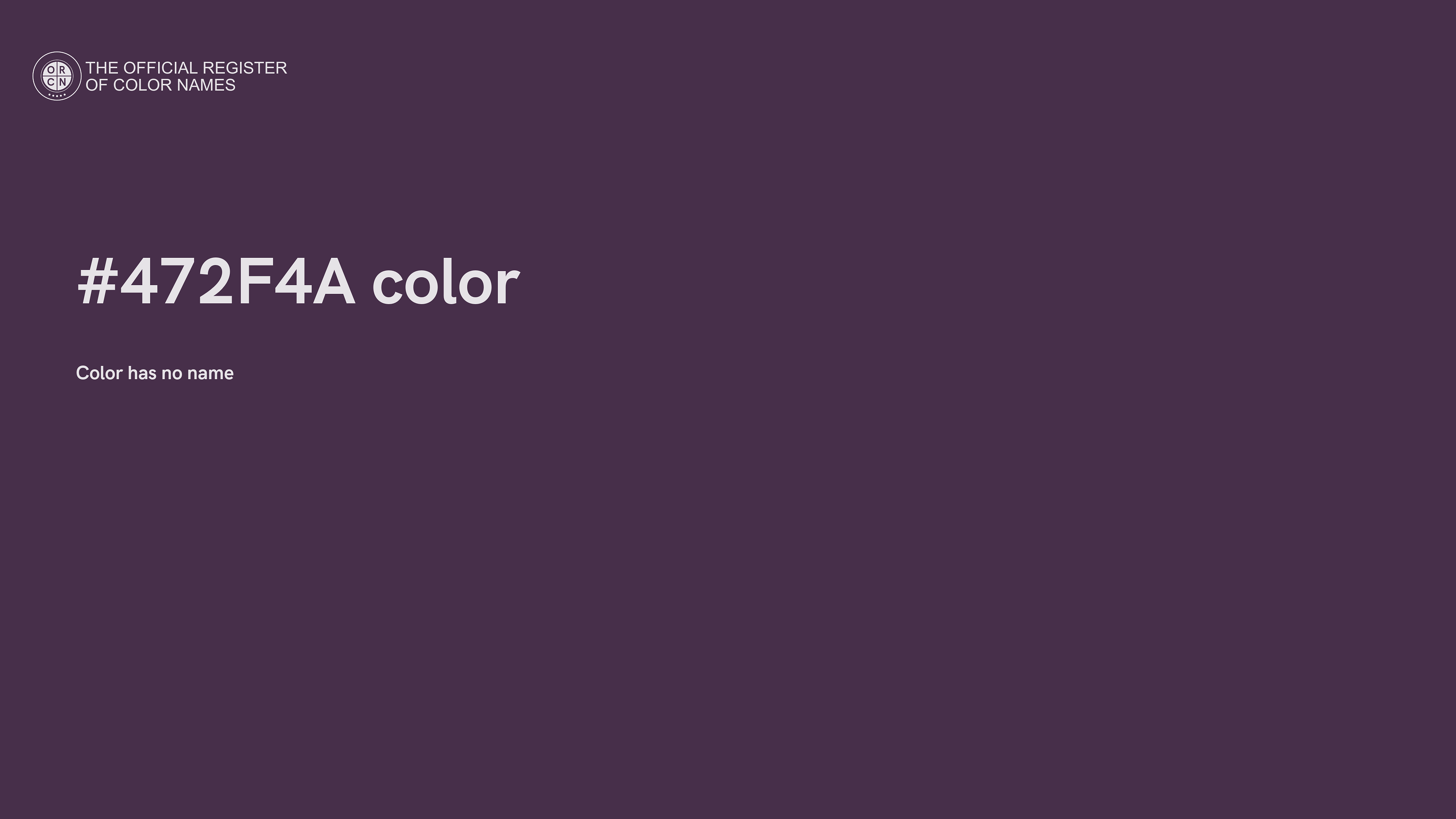 The digital color HEX #472F4A belongs to the Magenta Color Family featuring Low Saturation (Saturation Family) and Dark (Brightness Family).