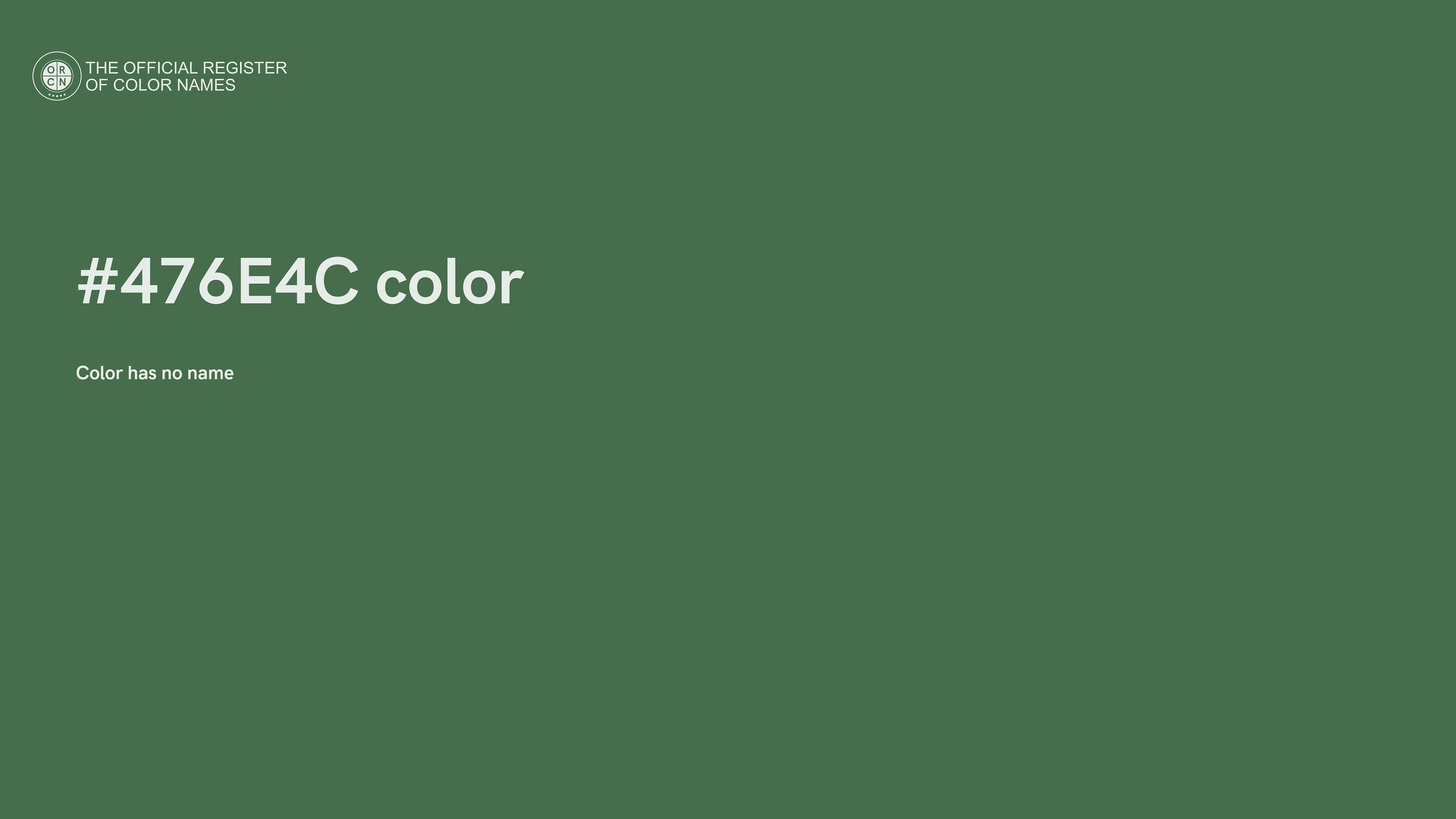 The digital color HEX #476E4C belongs to the Green Color Family featuring Low Saturation (Saturation Family) and Neutral (Brightness Family).