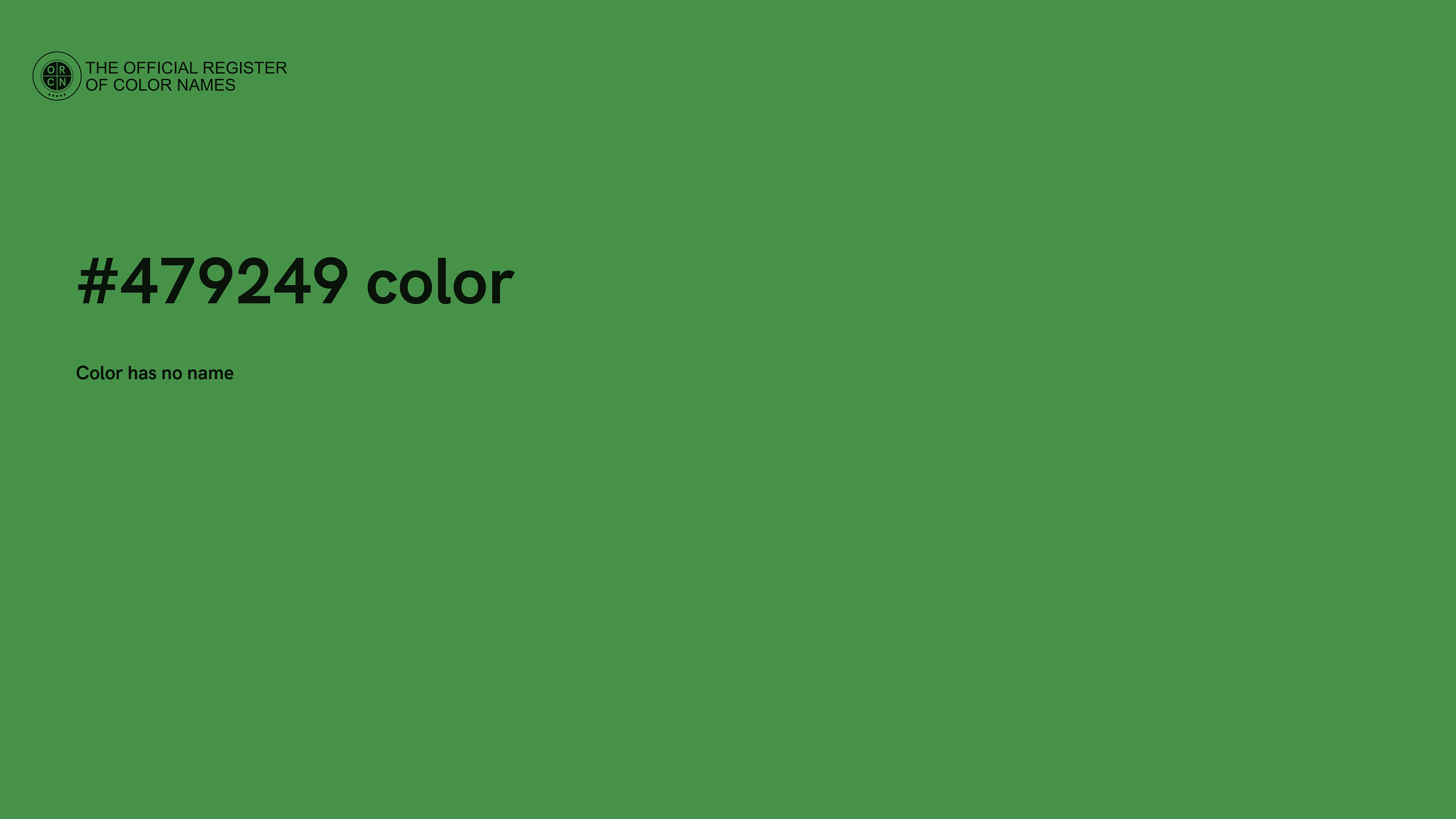 The digital color HEX #479249 belongs to the Green Color Family featuring Mild Saturation (Saturation Family) and Light (Brightness Family).