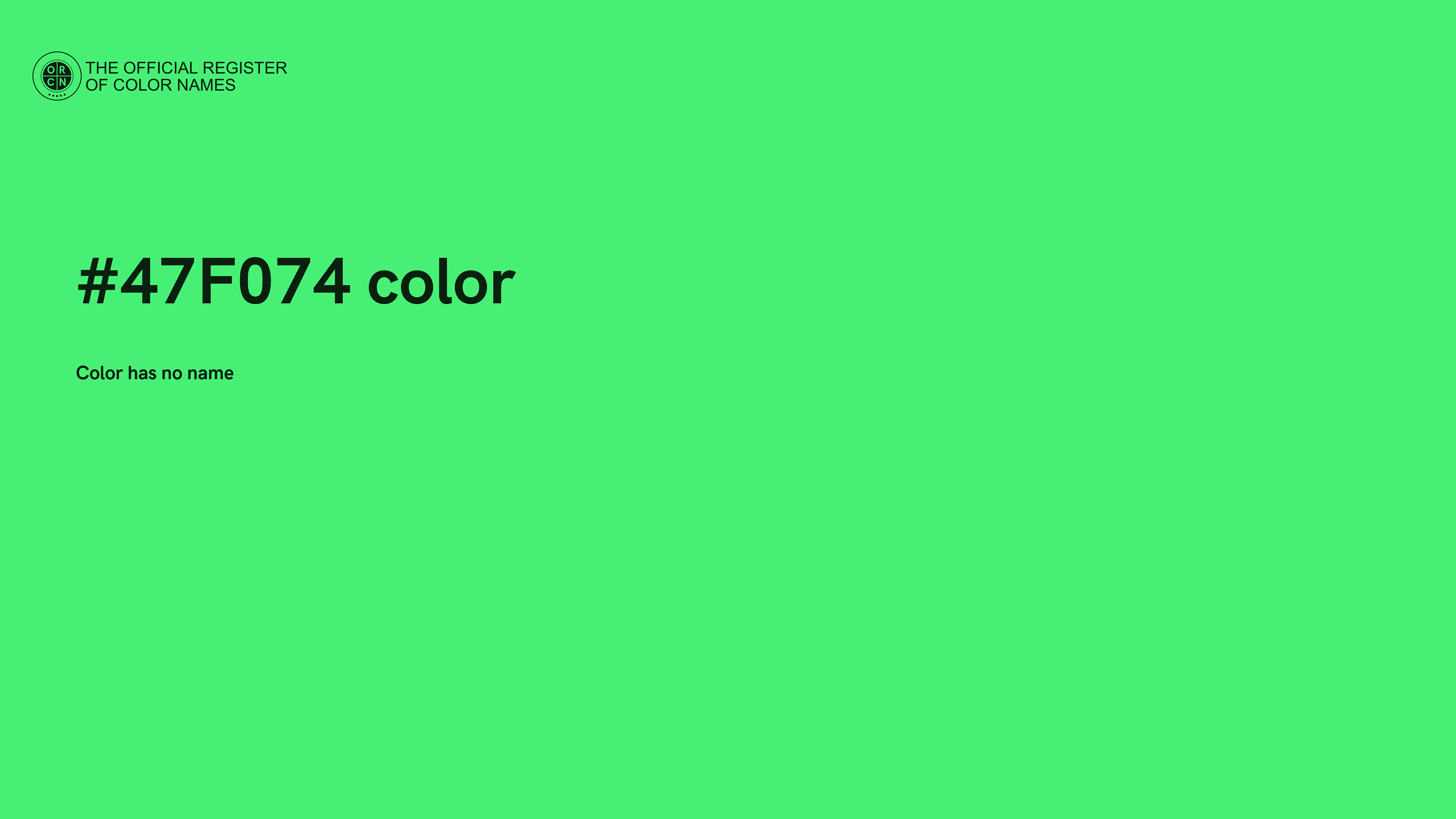 The digital color HEX #47F074 belongs to the Spring Green Color Family featuring Full Saturation (Saturation Family) and Very Light (Brightness Family).