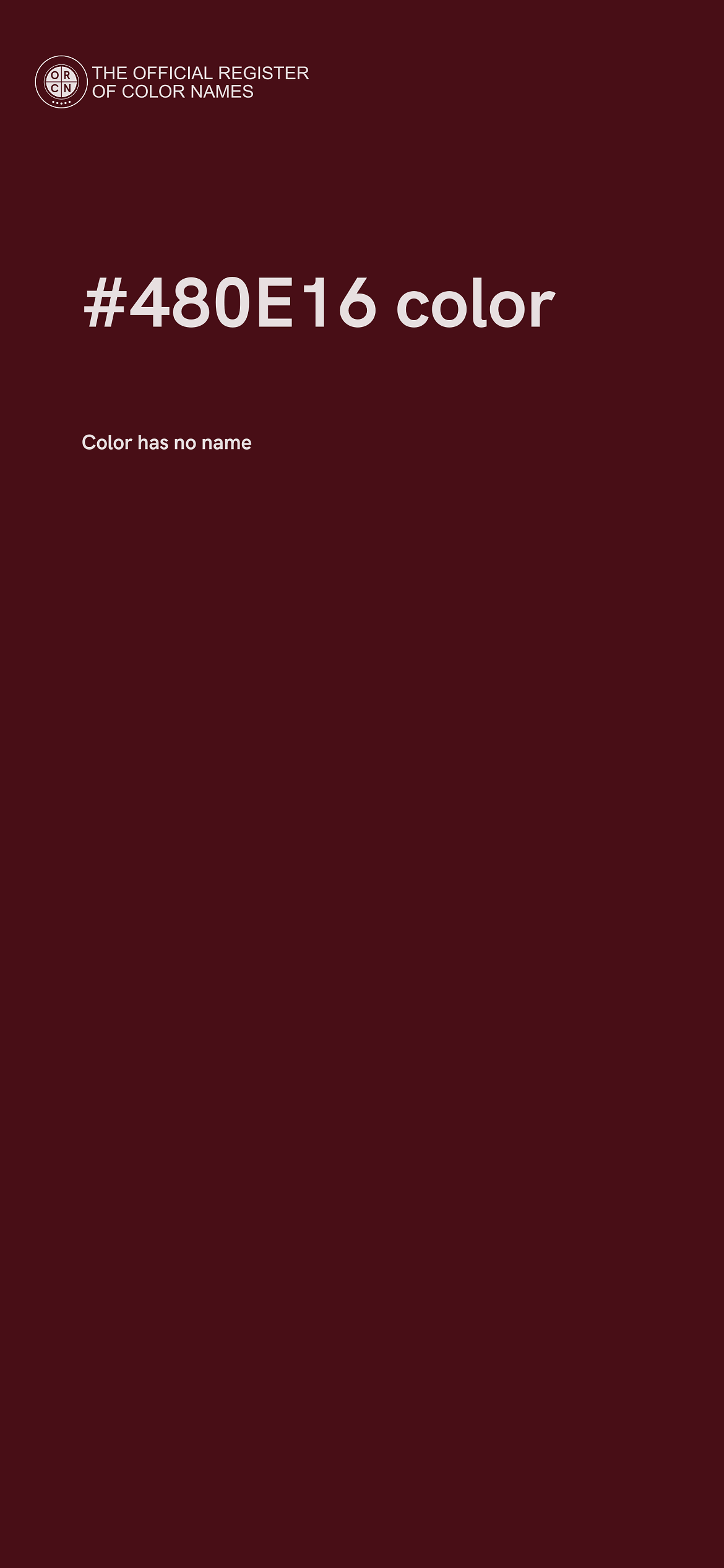 For printing in non digital world, #480E16 is represented in CMYK as 0 Cyan, 23 Magenta, 20 Yellow, and 72 Black (Key) (C:0 M:23 Y:20 K:72).
