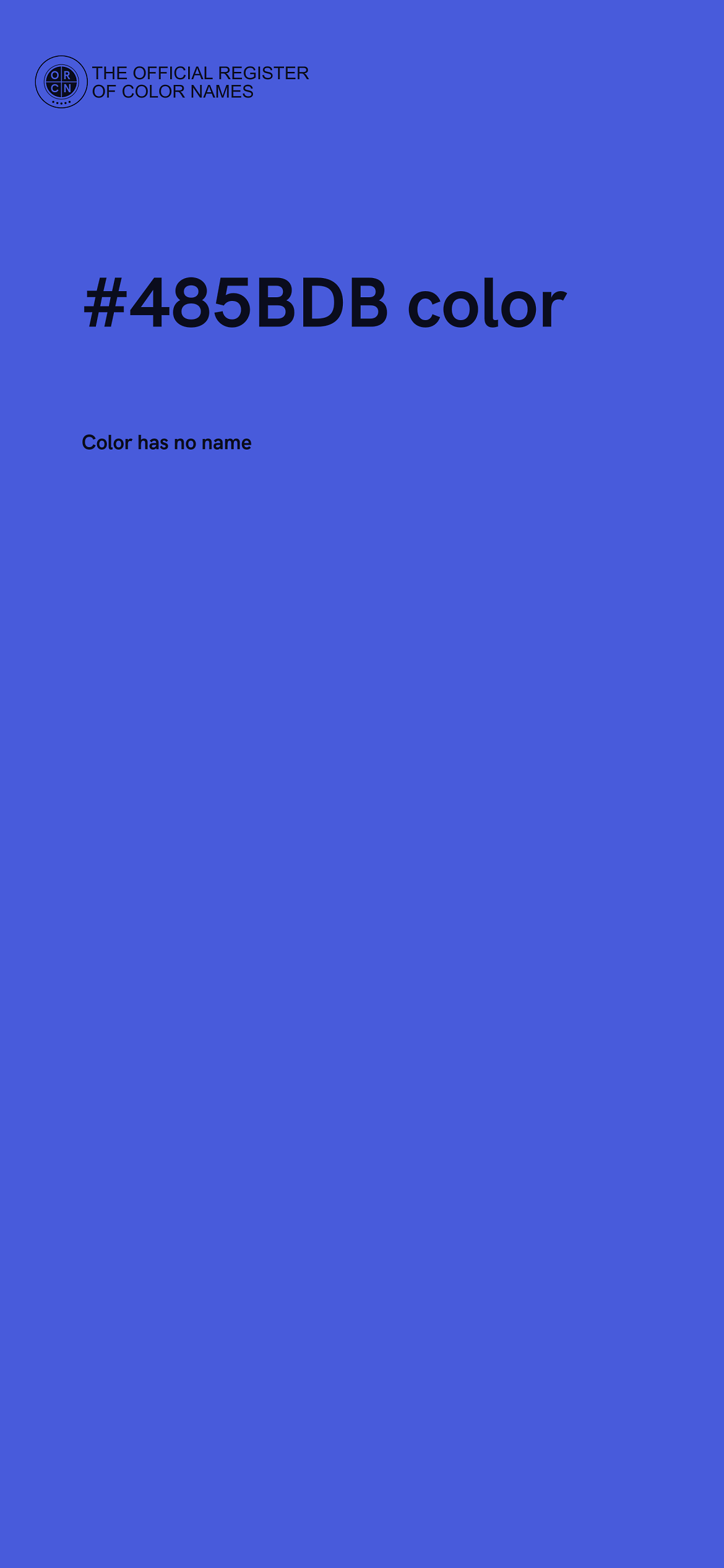 The digital color HEX #485BDB belongs to the Blue Color Family featuring High Saturation (Saturation Family) and Light (Brightness Family).